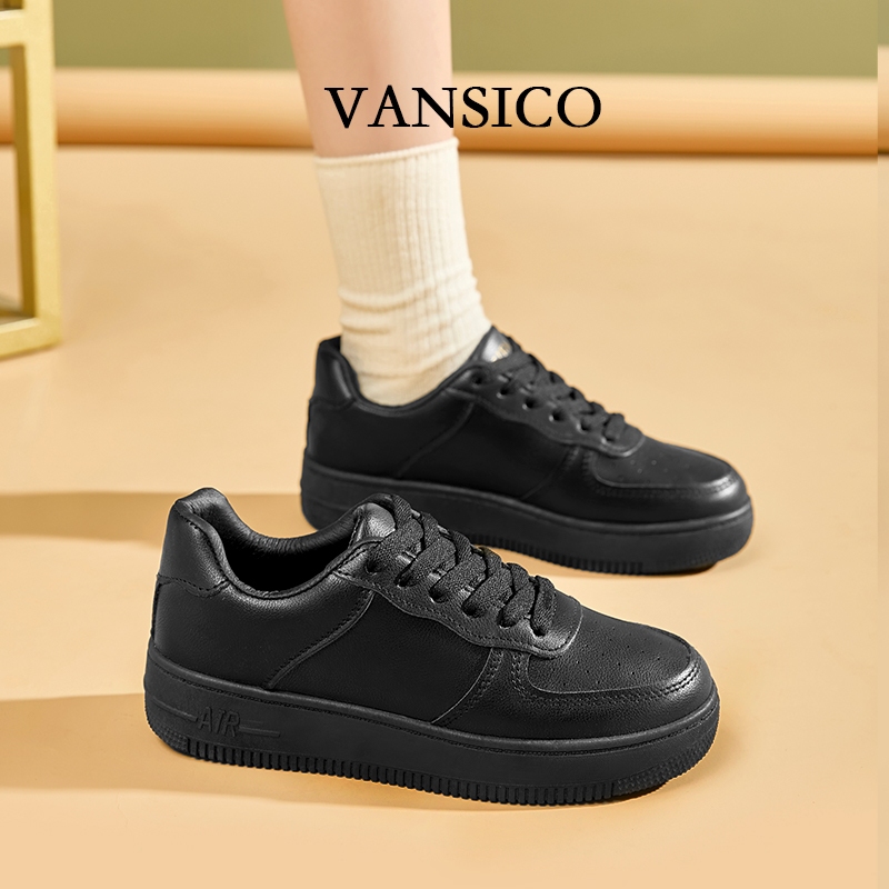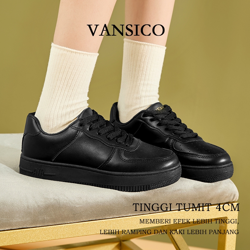 VANSICO Sepatu Sneakers Olahraga Sekolah Wanita Tali Full Black Premium Hitam Polos Cewek Kets Casual Original 100 PERSEN