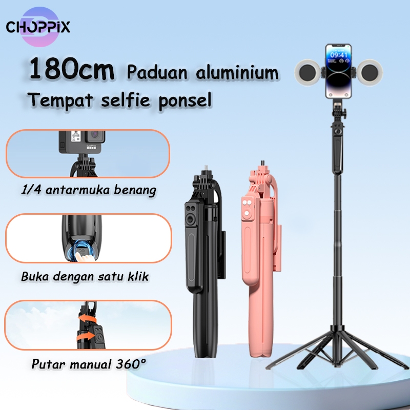 Choppix Tongsis Tripod Bluetooth Tripod 180CM Remote Selfie Stick Aluminium Wireless Remote Control 7 Tombol Tongka