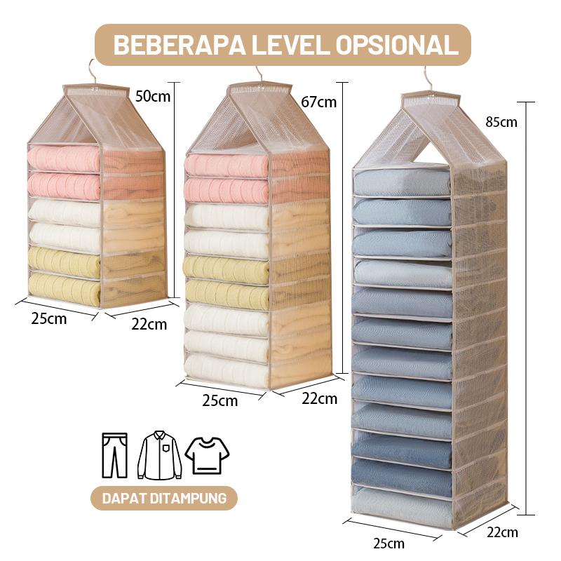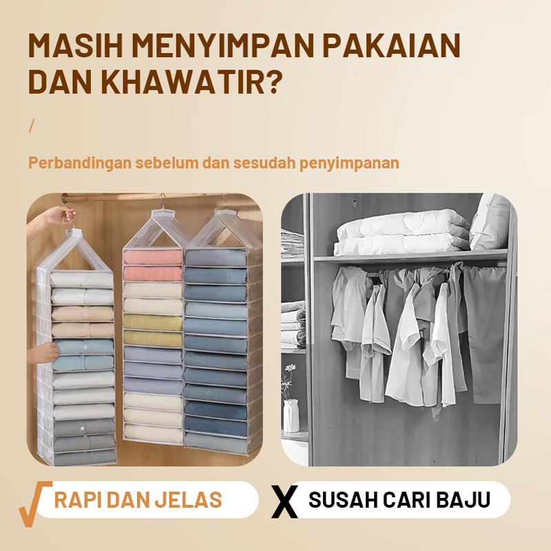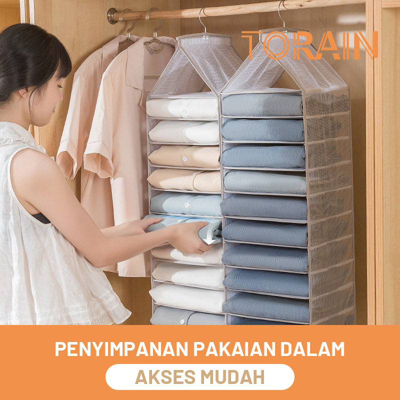 TORAIN Lemari Pakaian Penyimpanan Tas Gantung Hanger baju 6/9/12L Organizer Baju