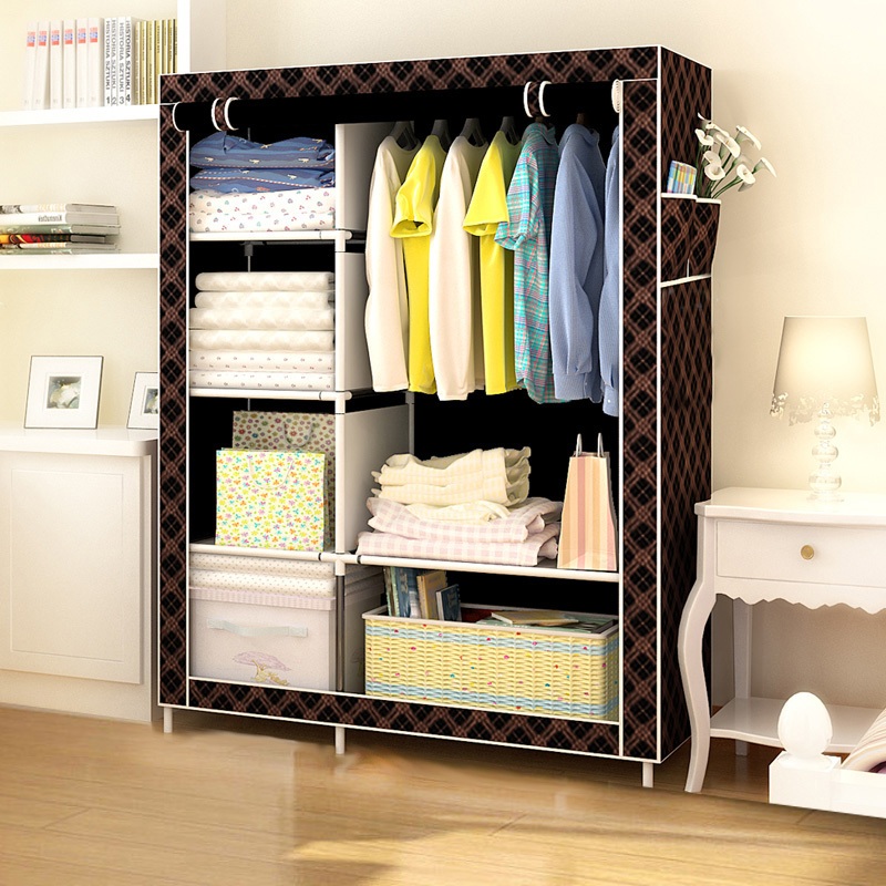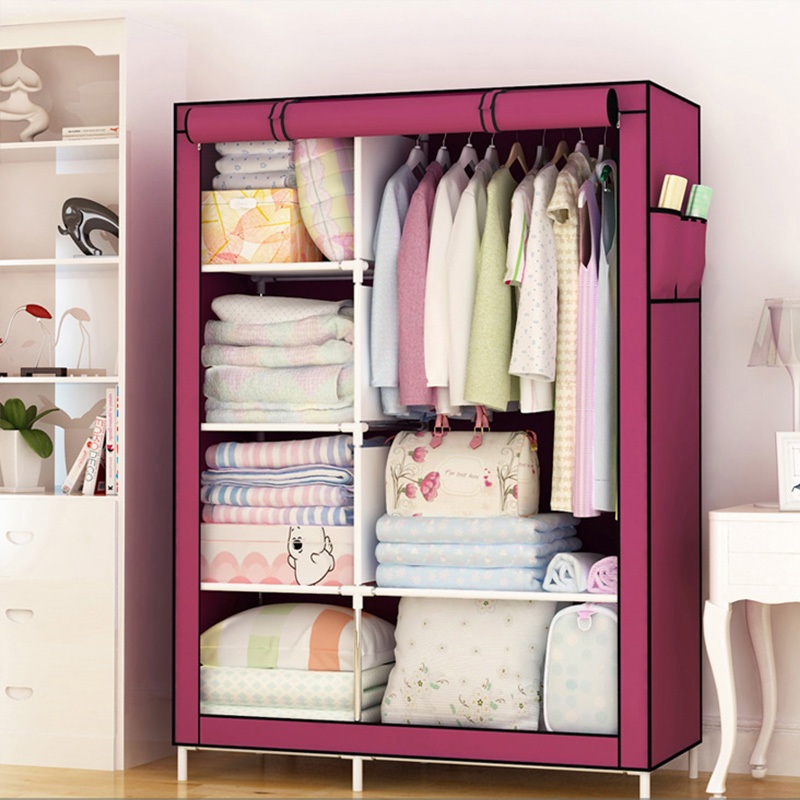 Lemari Pakaian Kain Portable Jumbo Dust Cover Anti Debu-3 Laci Multifungsi Kasar & Tahan Lama