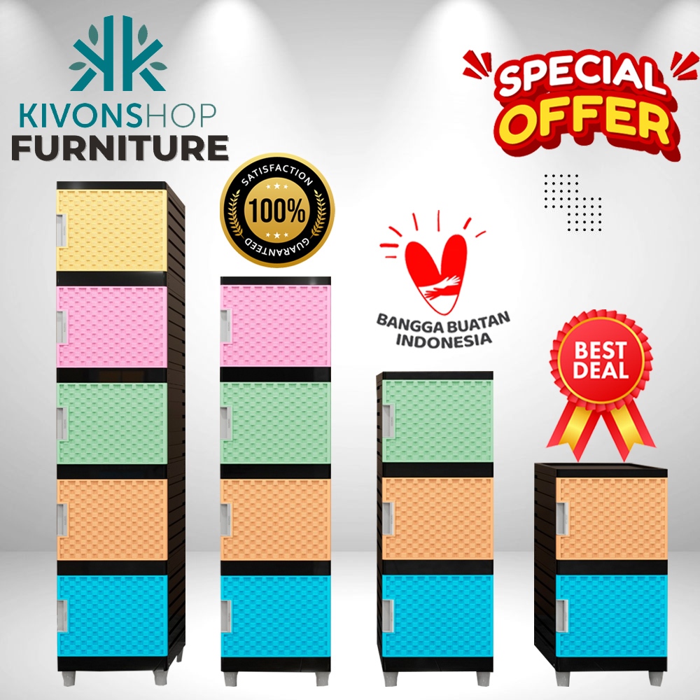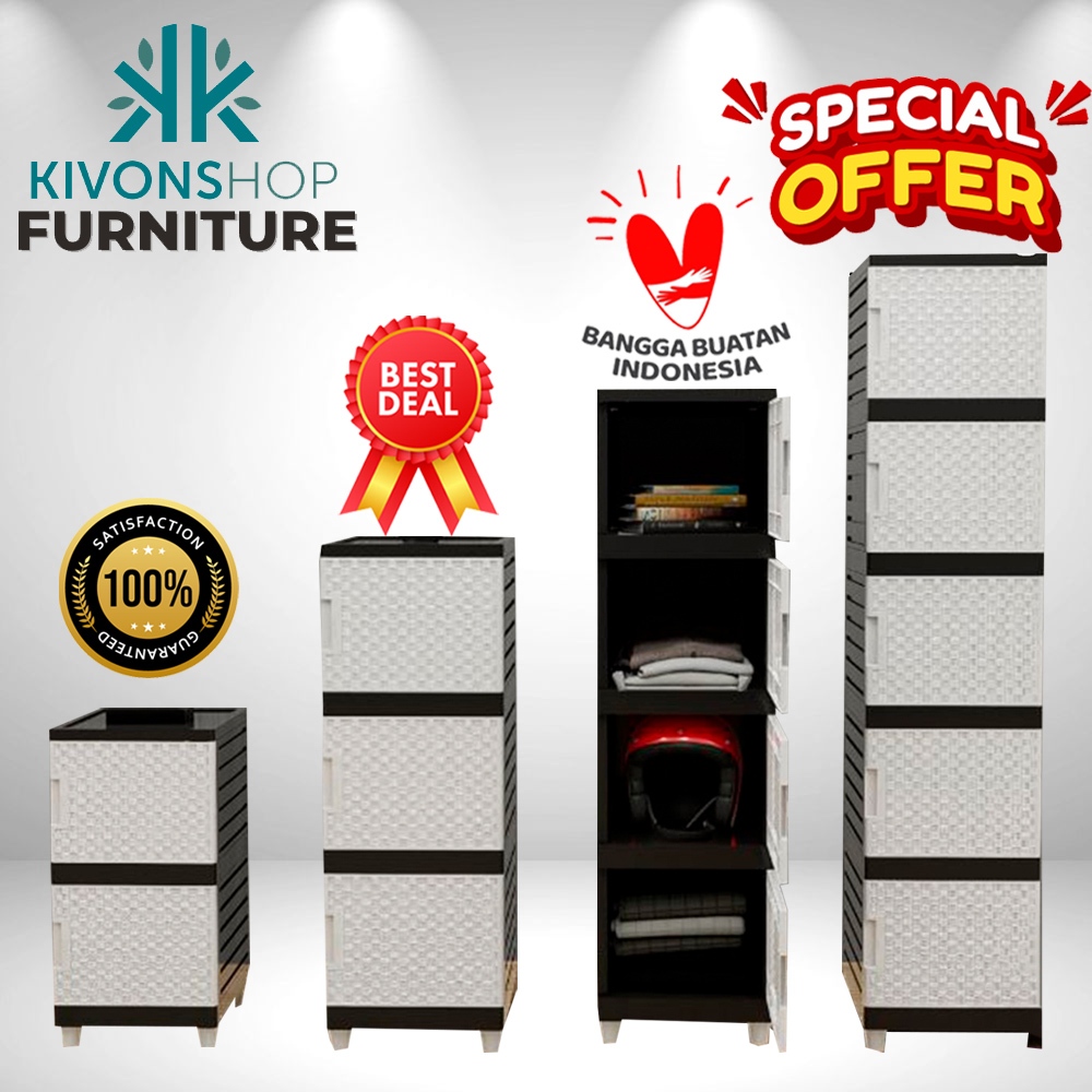 Lemari / Rak Susun Pakaian Baju Plastik Minimalis Slap Serbaguna 2 3 4 5 susun Motif Rotan / buku / handuk / maina