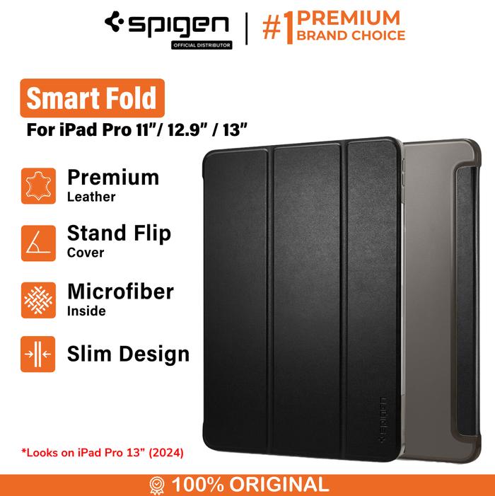 Case For Ipad Pro 11" 12.9" 13" (2024 / 2022 / 2020 / 2021) Spigen Smart Fold Stand Flip Cover Casing - Black, 13" 2024