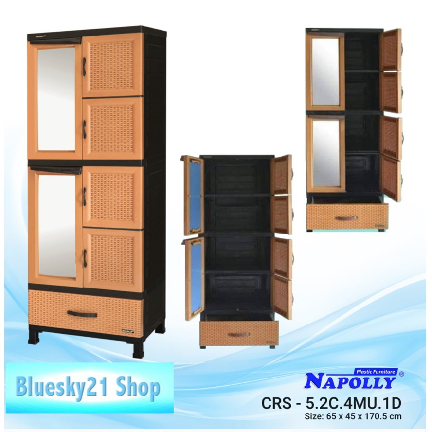 LEMARI PLASTIK HAMBALAN / LEMARI PLASTIK MOTIF RATTAN / LEMARI + LACI + KACA MURAH CRS NAPOLLY
