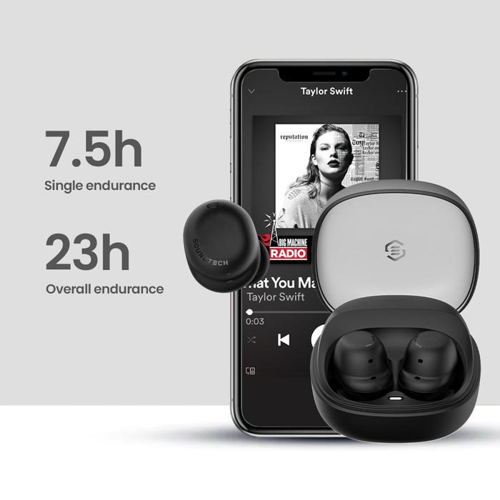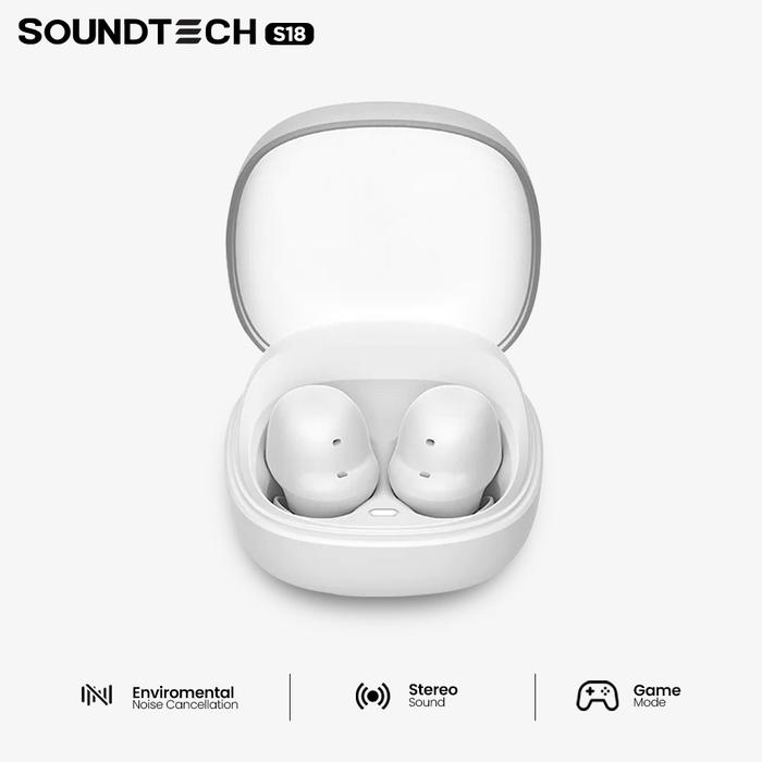 Soundtech S18 Tws Wireless Stereo Earbuds With Noise Reduction - Black - Putih