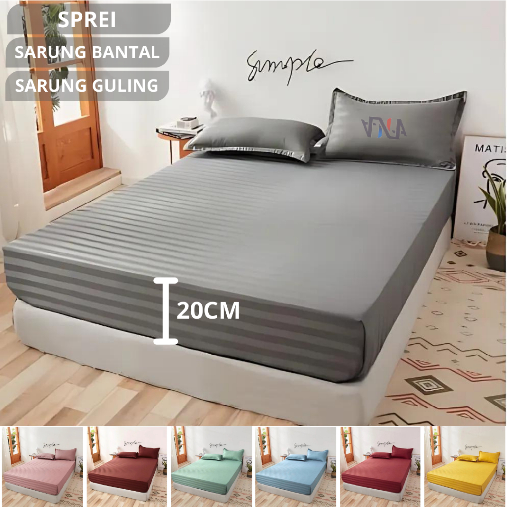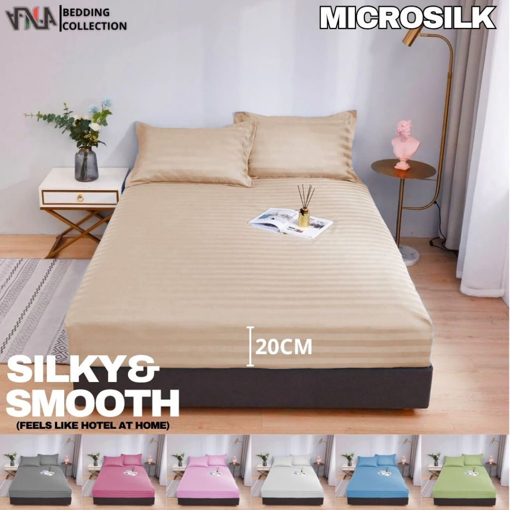 [READY] TINGGI 20Cm Sprei Set Hotel Salur Bahan Microtens'l Silk Premium Grade A Lebih Tebal