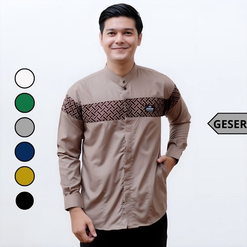 Baju Koko Pria Lengan Panjang Motif Kobata Kombinasi Batik Warna Crem