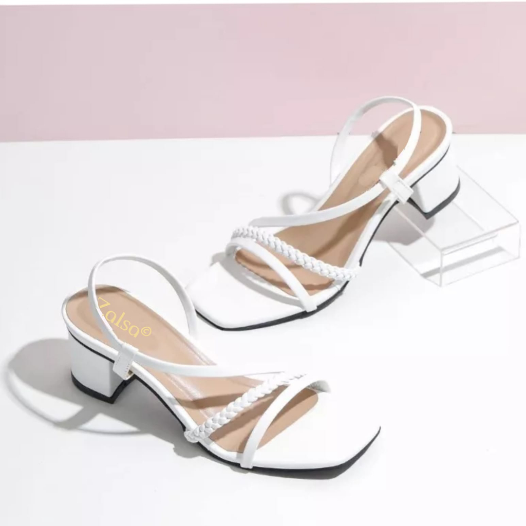 Sepatu High Heels Wanita Tali Belakang Sintetis Elegan