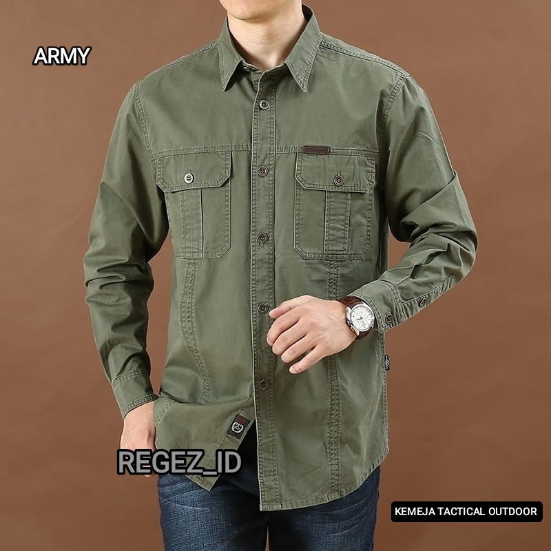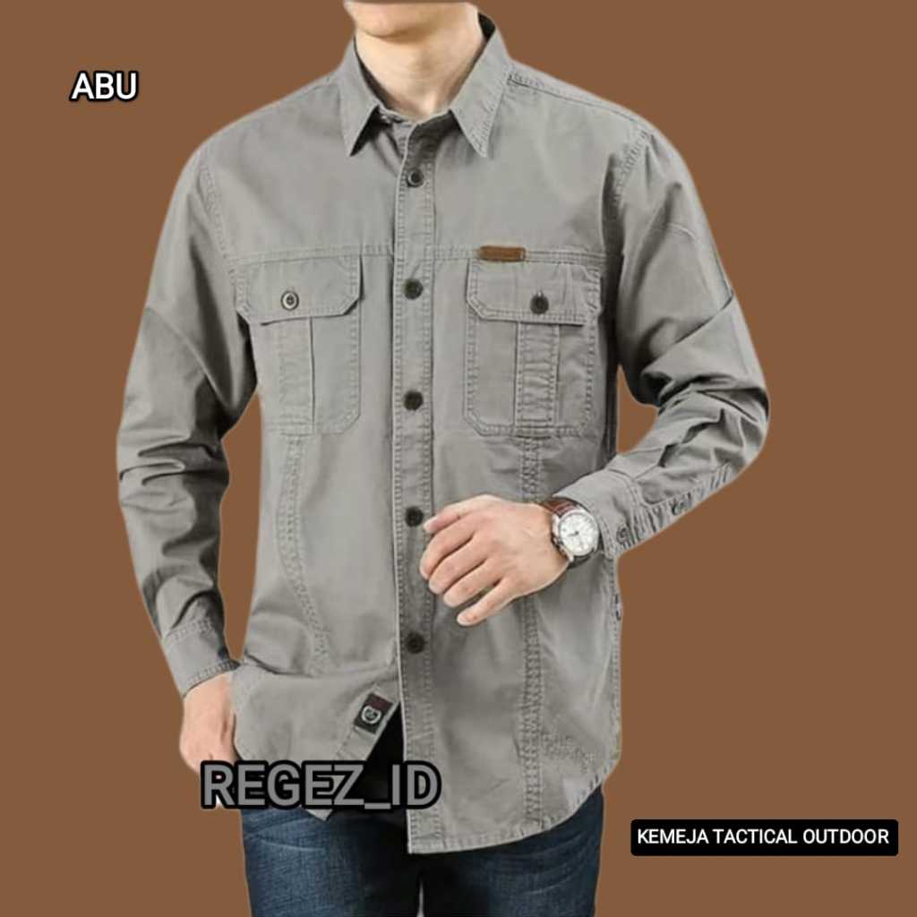 kemeja taktical Lengan Panjang Pria polos Original bahan katun tebal kemeja cowok dewasa terbaru distro 2024 kemeja