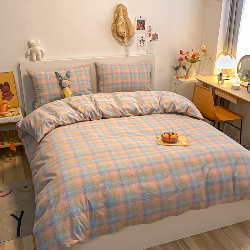 Worldhome Bedcover Set Sprei Motif Aesthetic Korea Style Sprei Katun Lembut dan Adem 120/160/180cm