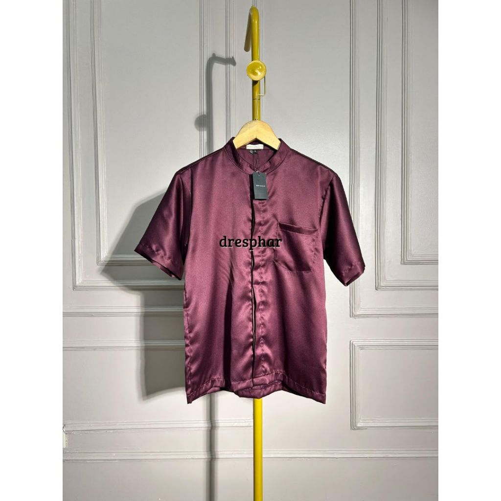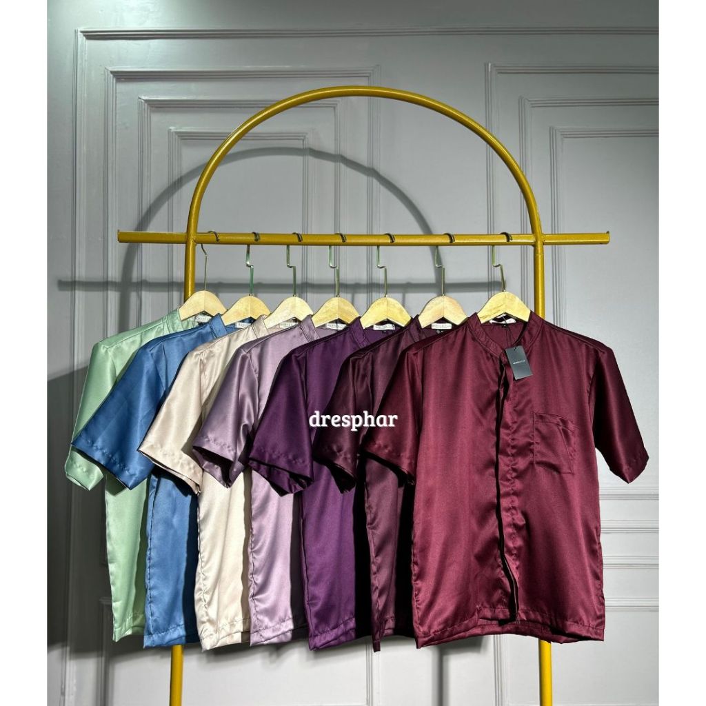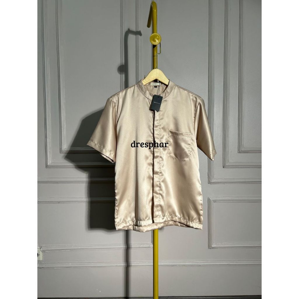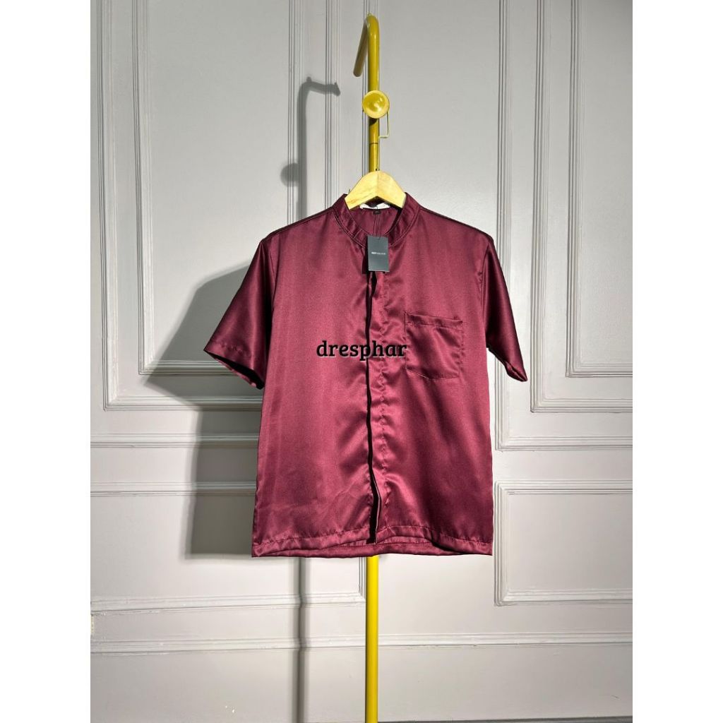 KEMEJA LENGAN PENDEK SATIN KOKO KERAH CHANGI ATASAN PRIA FORMAL SIZE M L XL XXL LD 100 - 120