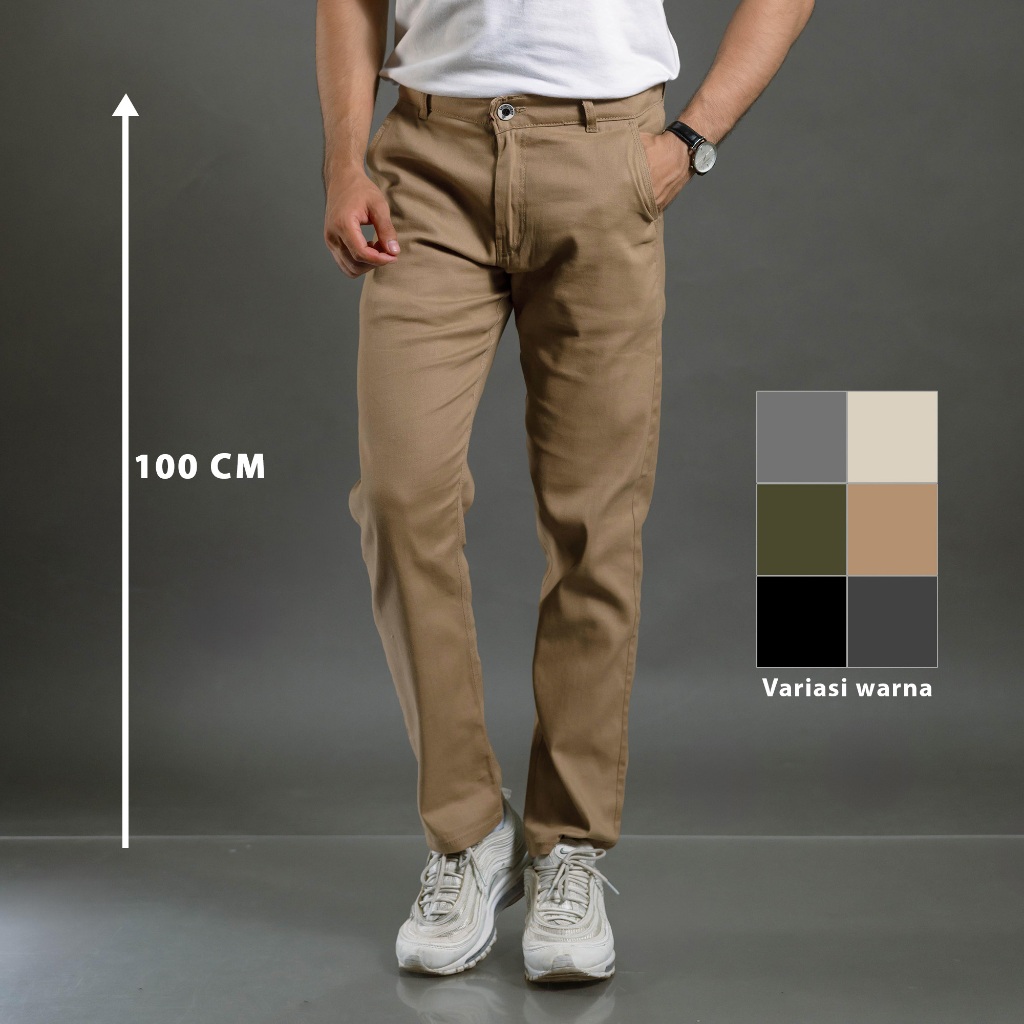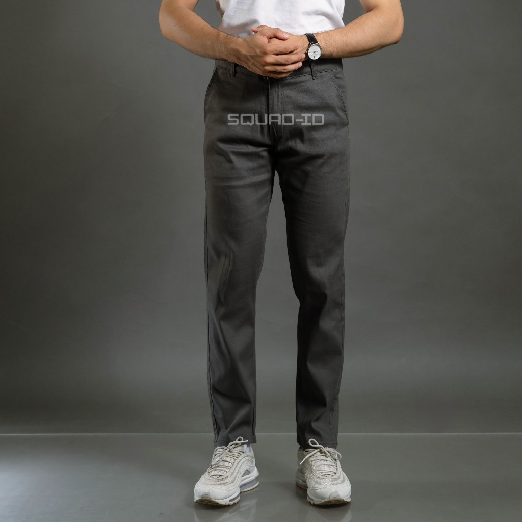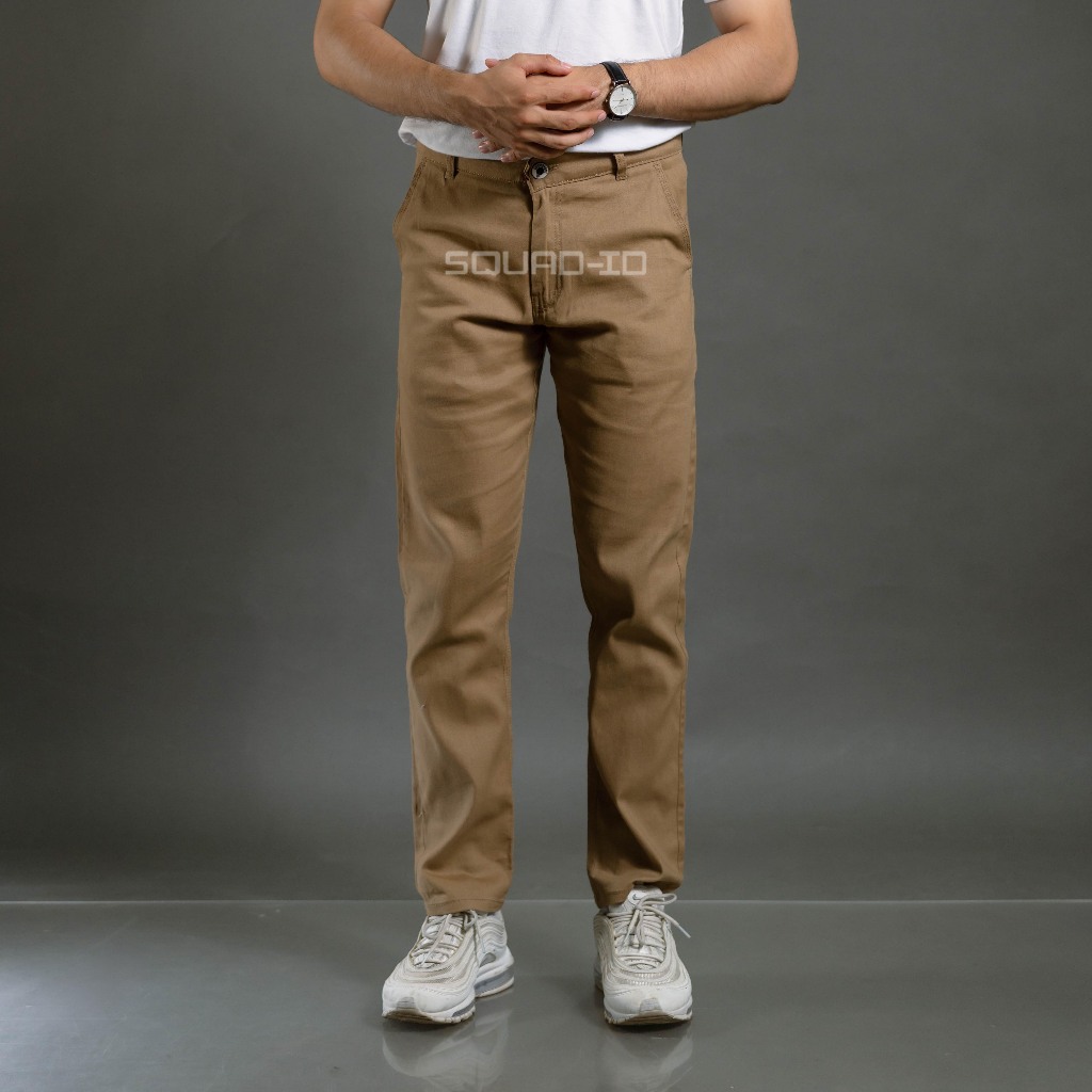 SQ SQUAD ID Celana Cinos Panjang Pria Warna Mocca Slim Fit Katun Stretch Celana Casual Formal Santai