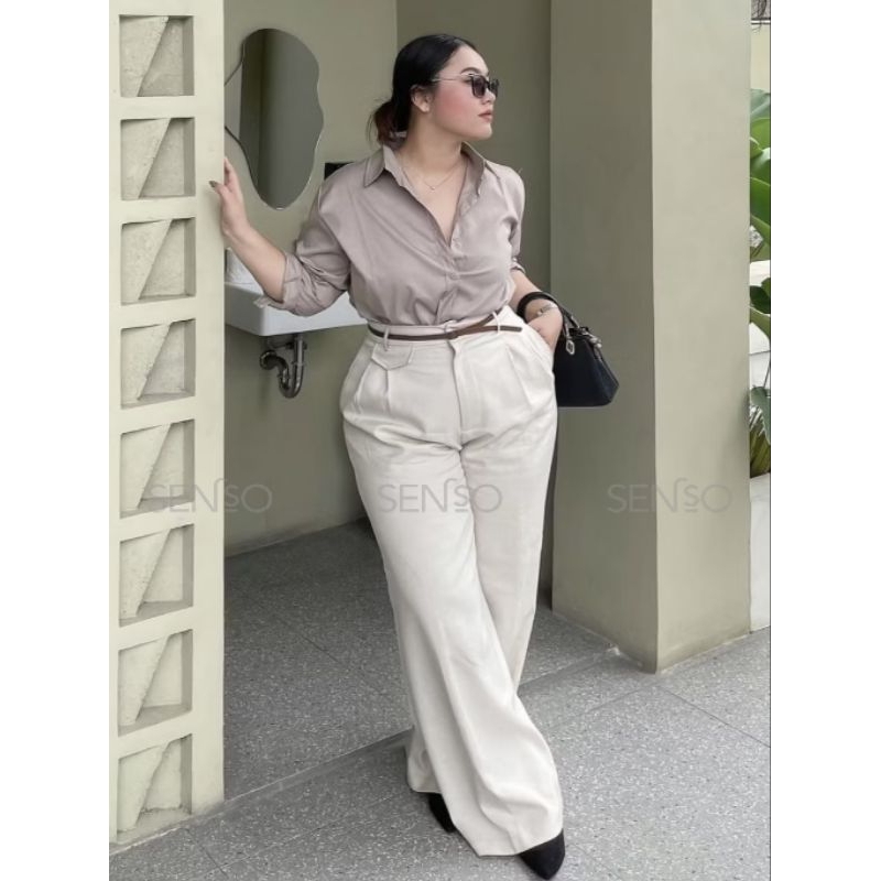 Celana Kerja Basic Wanita Kantor Formal Kulot Hightwaist Bahan Semi Woll Jumbo Big size Kekinian