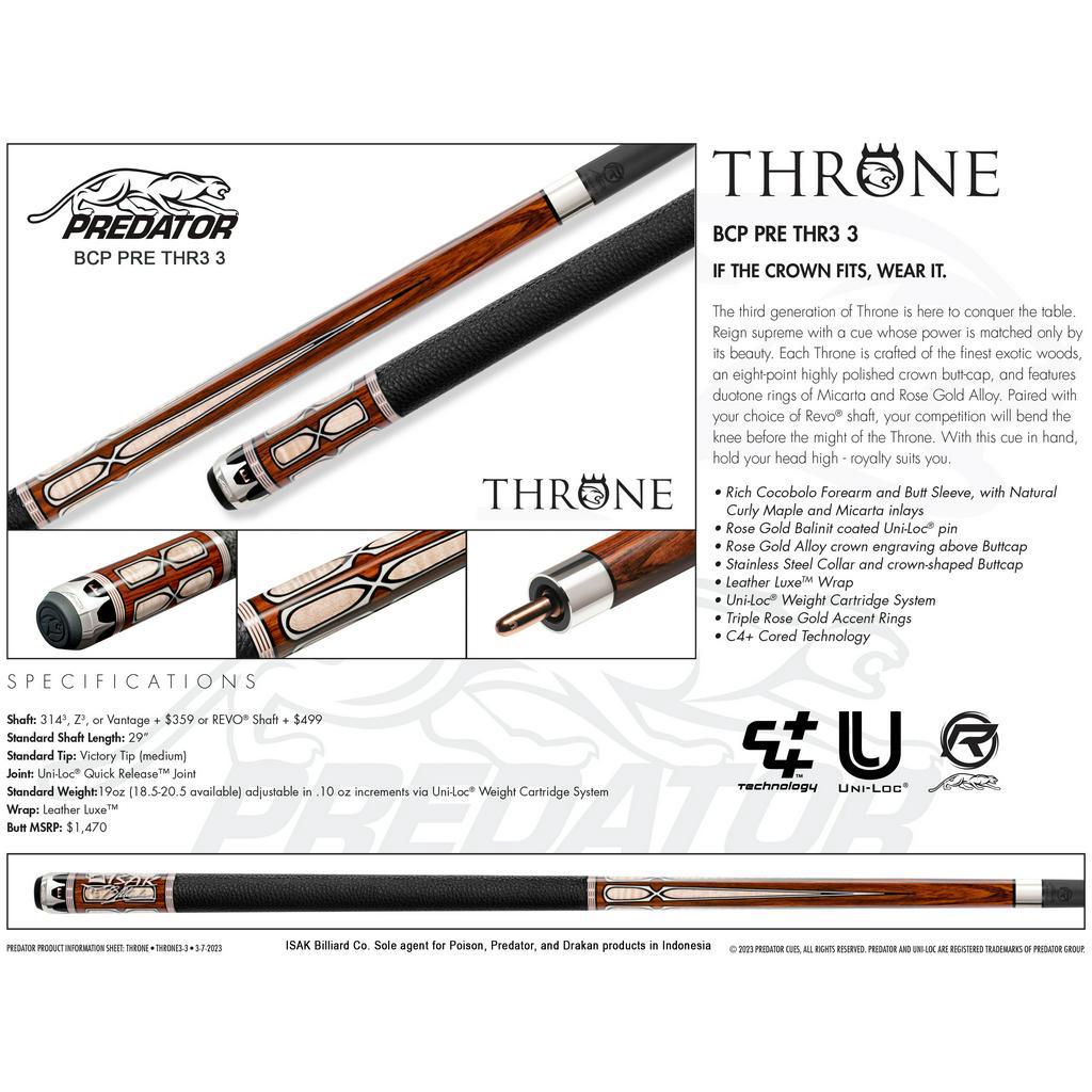 Predator Cue Throne3 3 - Low Deflection Billiard Stick Biliar Stik Ori