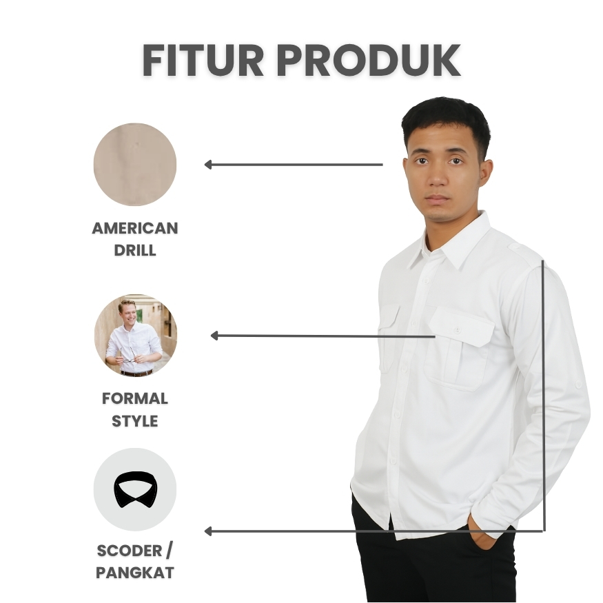 Baju Dinas Putih Pria Lengan Panjang Seragam Putih PNS Putih Pria Kemeja Pdl Pdh Putih Pns Pria