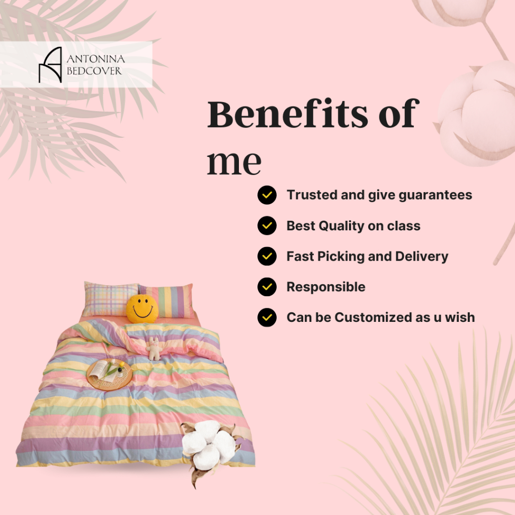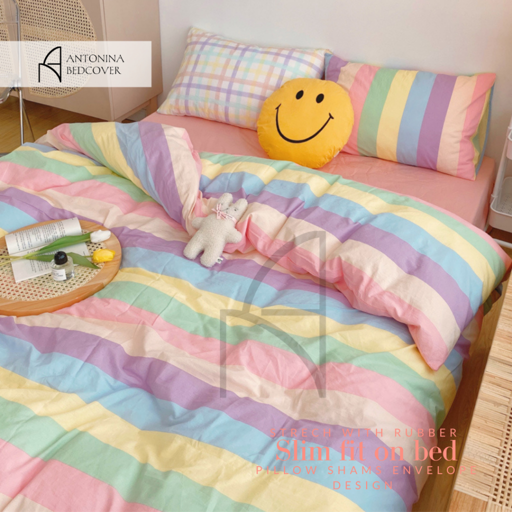 Bed cover Set Selimut Sprei Buble Gum Pink Baby Two Tone Motif Aesthetic Korea ukuran 160x200x30 180x200x30 160x200