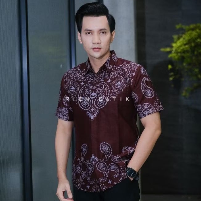 Kemeja batik pria SLIMFIT lengan pendek bahan katun lapis furing premium MOTIF RIEN BATIK Sragenan