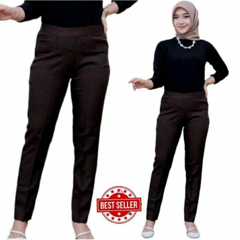 Celana kantor kerja wanita pinggang karet