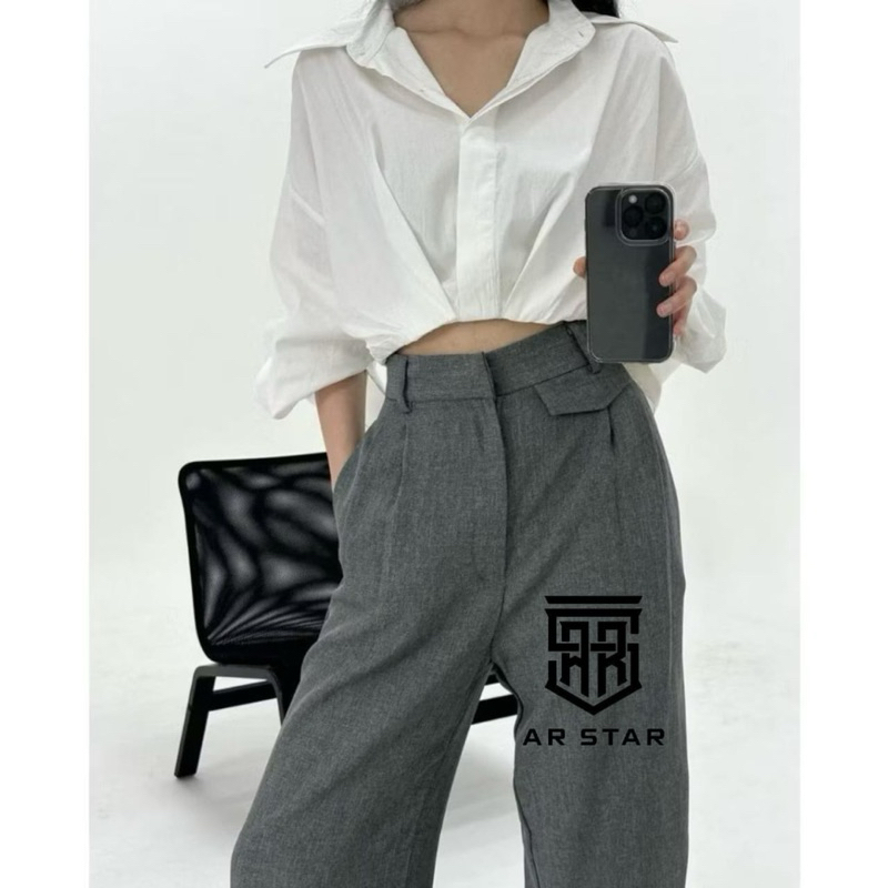 AR STAR - Oro Pants Highwaist Semi Wool - Celana Kerja Wanita Loose Casual