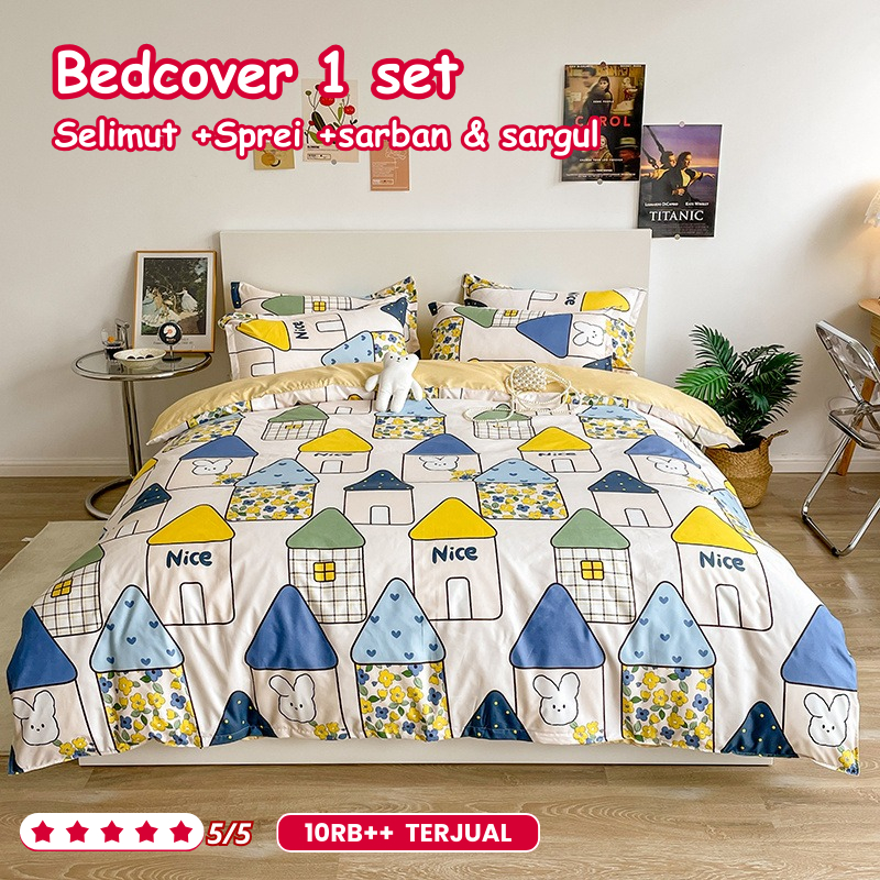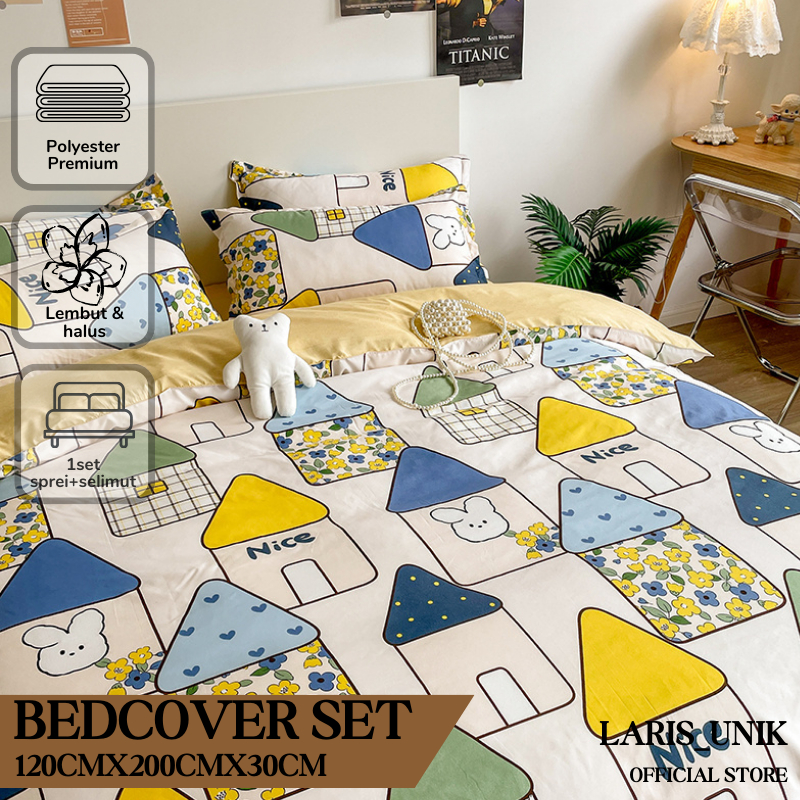 Laris_Unik Promo Selimut + sprei dan sarung bantal Bedcover ukuran 120x200x30Cm bahan polyester lembut tebal dan ny