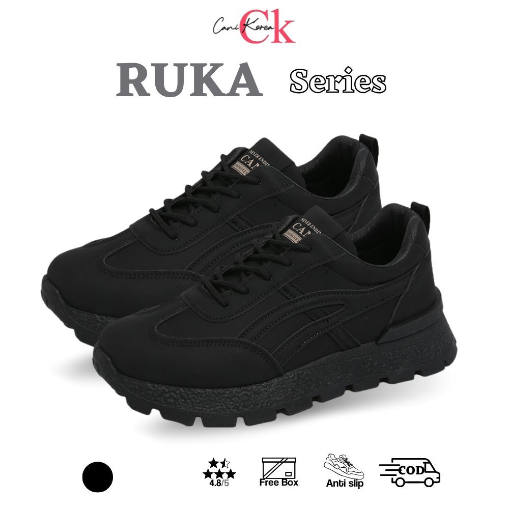 CaniKorea "Free Box" Size (36 - 41) Ruka Fullblack Sepatu Wanita Sneakers Fashion Casual Korean Look 9007
