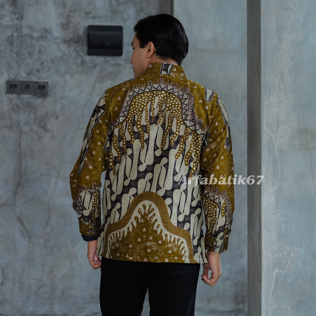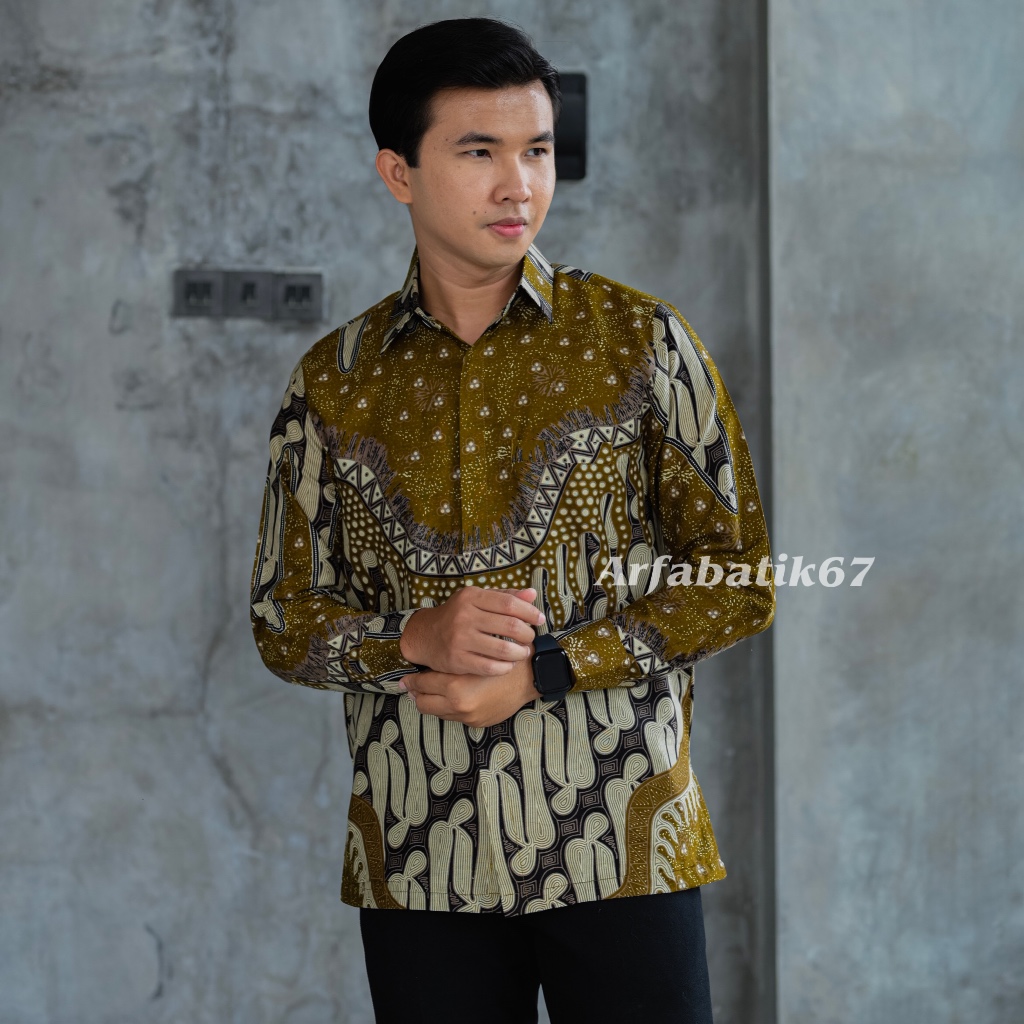 ZAITUN OLIVE Kemeja batik pria lengan panjang katun solo lapis furing hero ready seragaman by arfabatik67