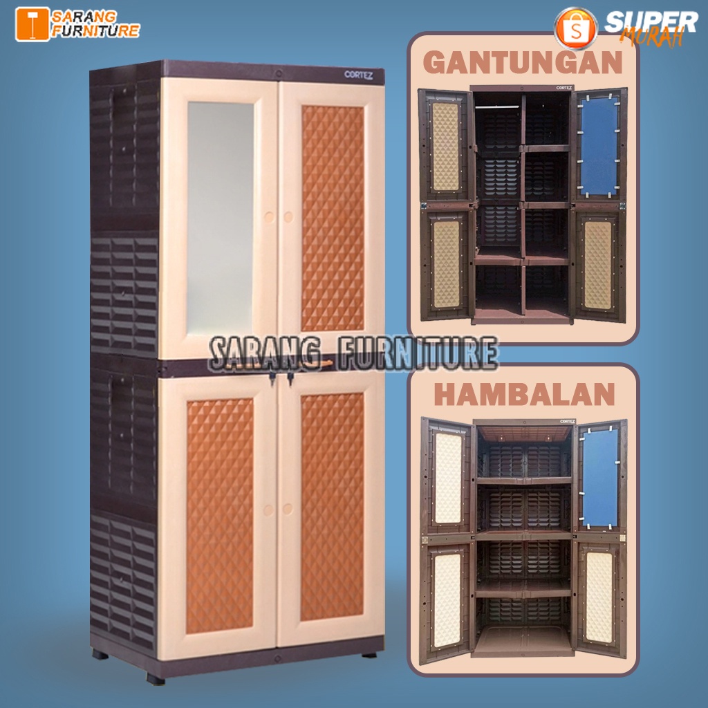JUMBO - LEMARI PAKAIAN CORTEZ LEMARI PAKAIAN PLASTIK SUSUN 4 GANTUNGAN KACA TABITHA CORTEZ LEMARI JUMBO