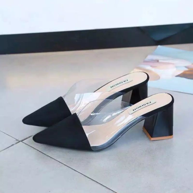 A06 Hak Tahu Transparan Lancip Suede Mika 36-40
