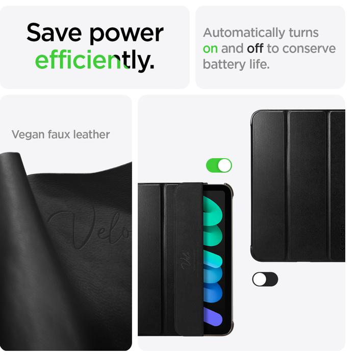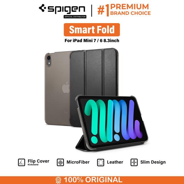 Case For Ipad Mini 7 / 6 8.3 Inch 2024 Spigen Smart Fold Leather Magnetic Stand Anti Crack Cover Casing - Black