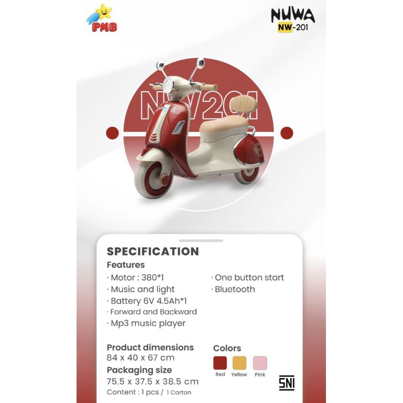 MAINAN ANAK MOTOR AKI PMB M 399 VESPA 6v 7ah / PMB NUWA NW 201