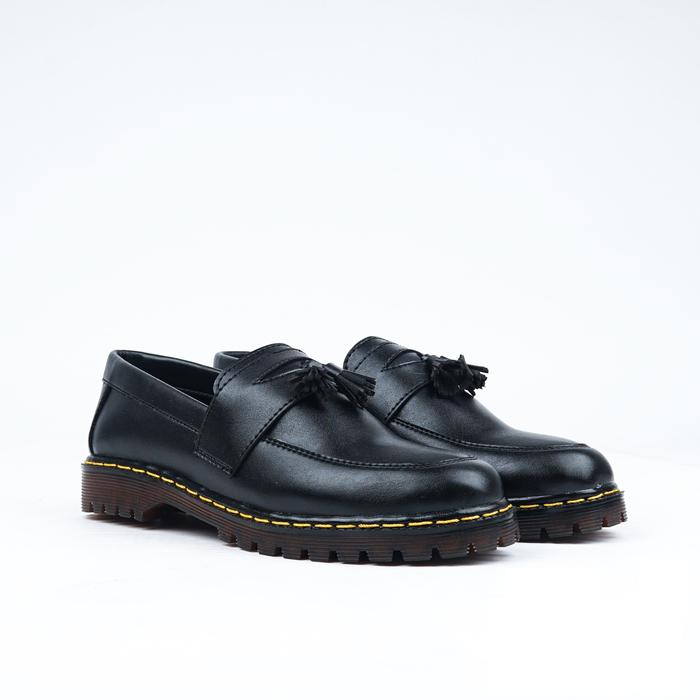 Moofeat Chief - Sepatu Slip On Pria Boots Penny Loafers Kulit Hitam - Hitam, 39