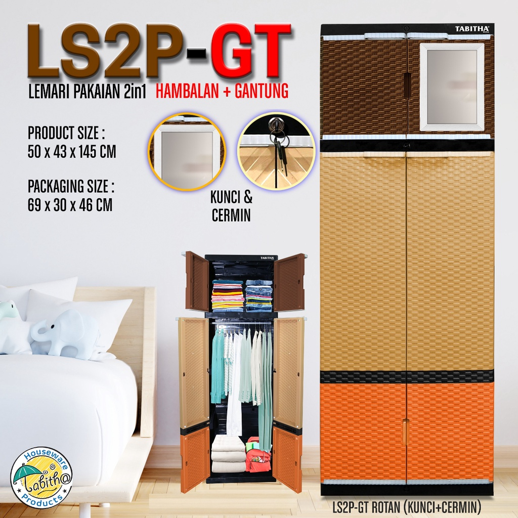 TABITHA LEMARI PLASTIK PAKAIAN KACA CERMIN GANTUNG HAMBALAN ROTAN WAJIK HANGER