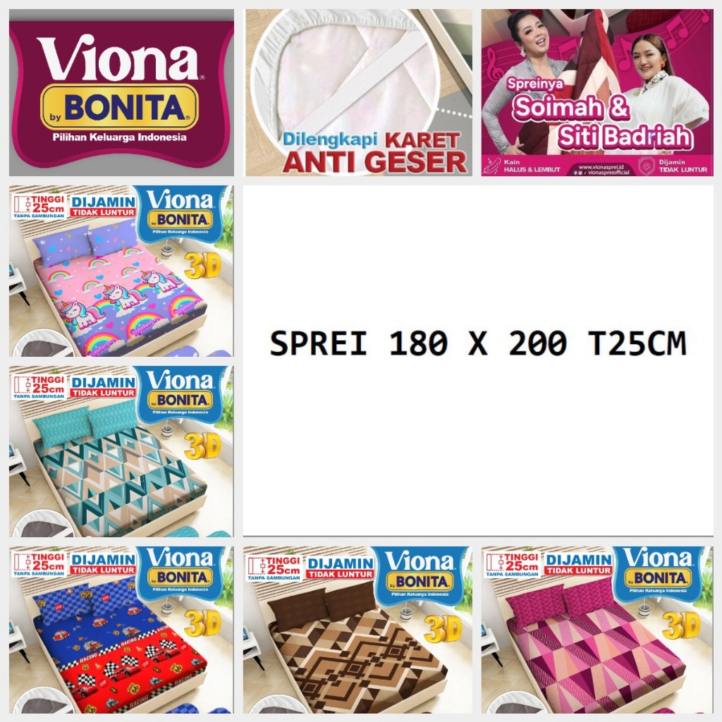 Viona By BONITA Sprei Tinggi 25 cm Size King 180 x 200 Ada Karet Anti Geser