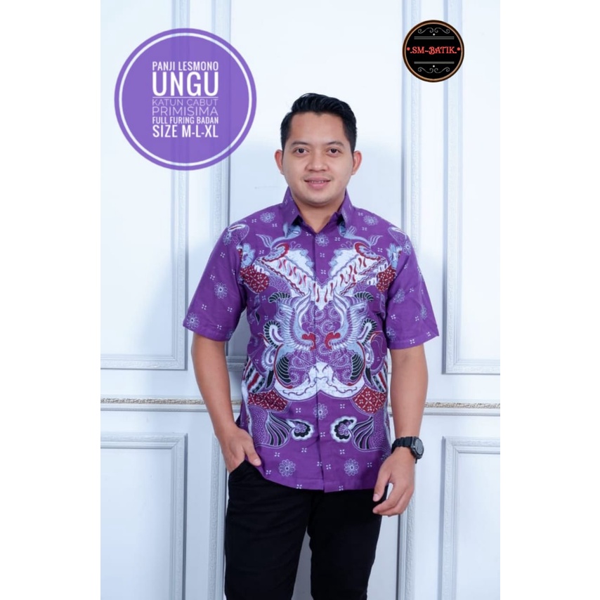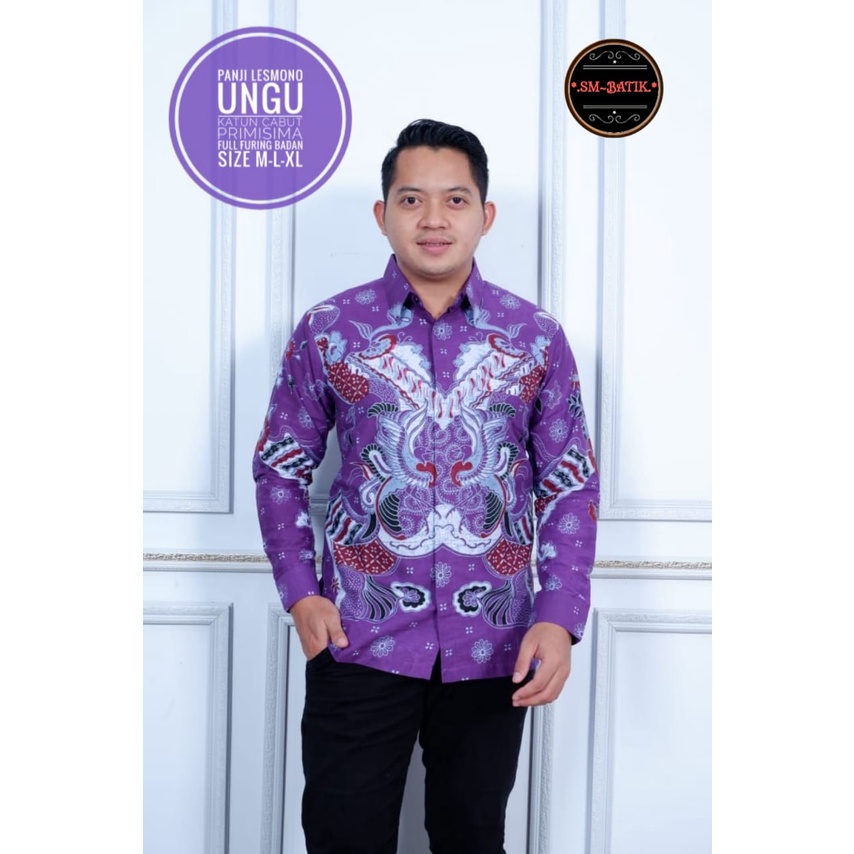 Kemeja Batik Solo Pria Lapis Furing PREMIUM Dewasa Lengan Panjang Pendek PANJI LESMONO UNGU LILAC