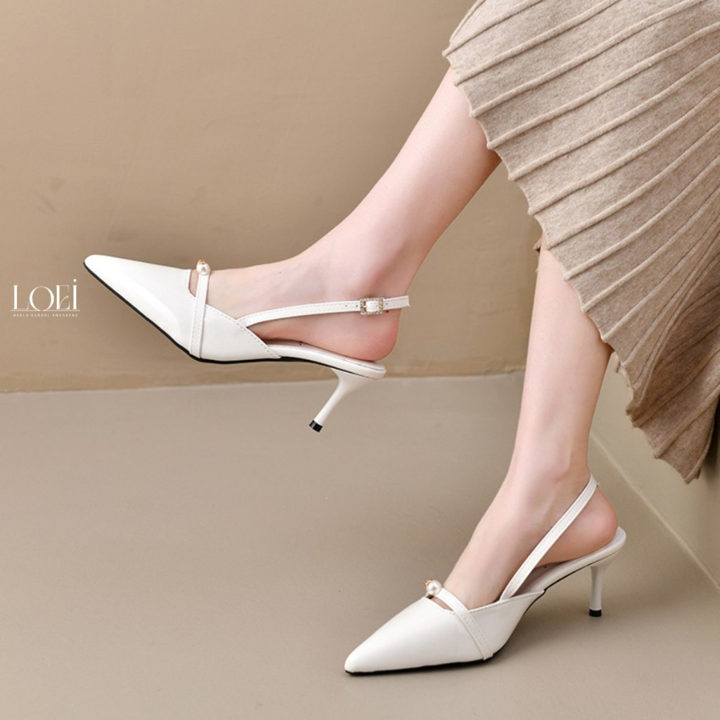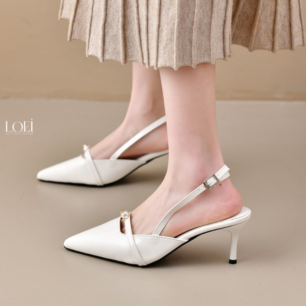LOEI Nayoung Kitten Heels Wanita Slingback Mutiara 7 CM 1666