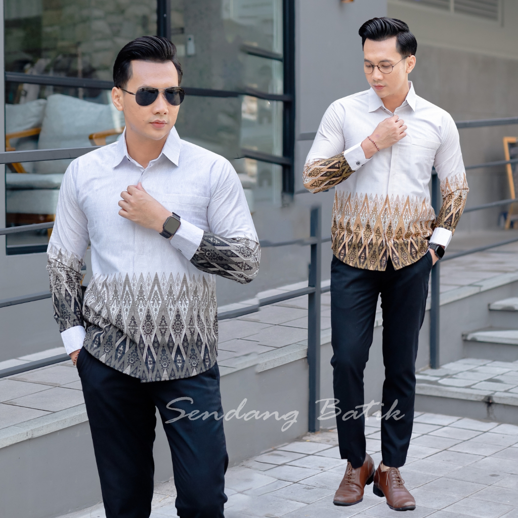 SENDANG BATIK Kemeja batik PIRAMID Atasan Batik pria modern slimfit Baju Batik Pria Lengan Panjang slimfit Furing E