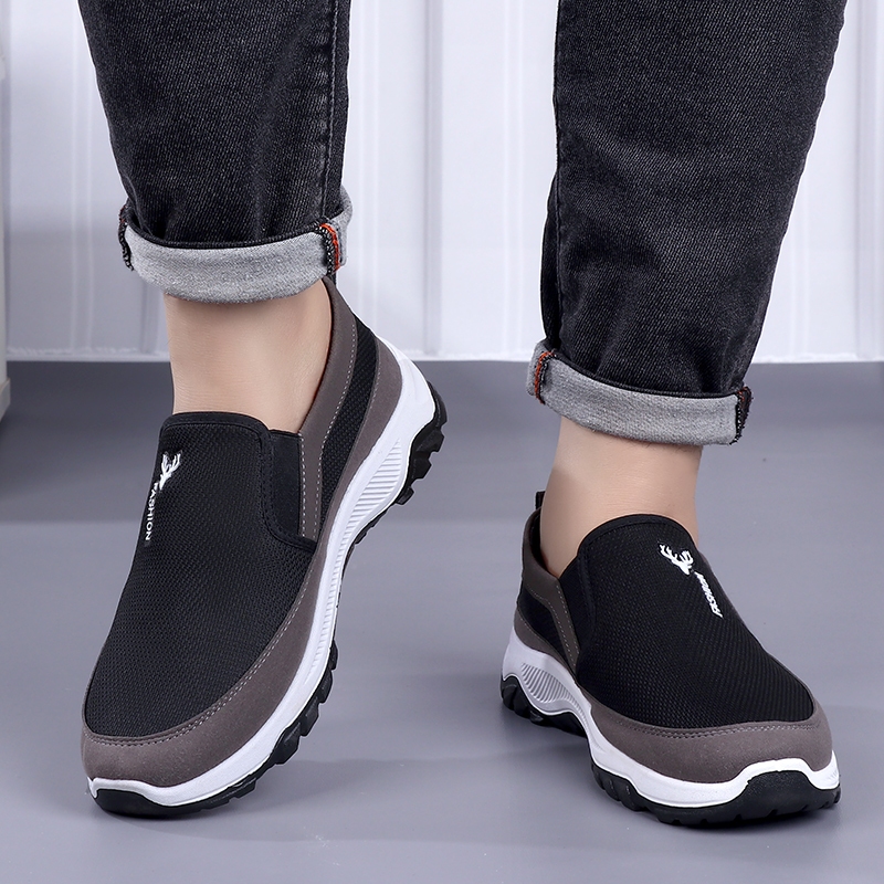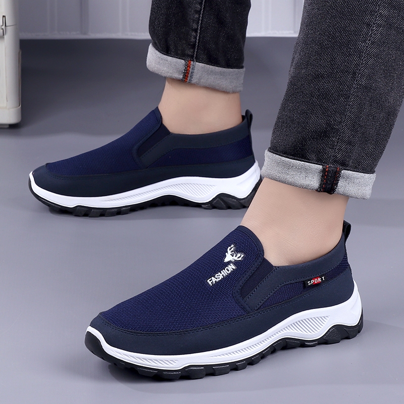 ❀ Chingu ❀ SEPRIA009 (Tanpa Kotak) Sepatu Sneakers Pria Cowok Tanpa Tali 3 Warna Hitam, Abu dan Biru Kasual Ringan