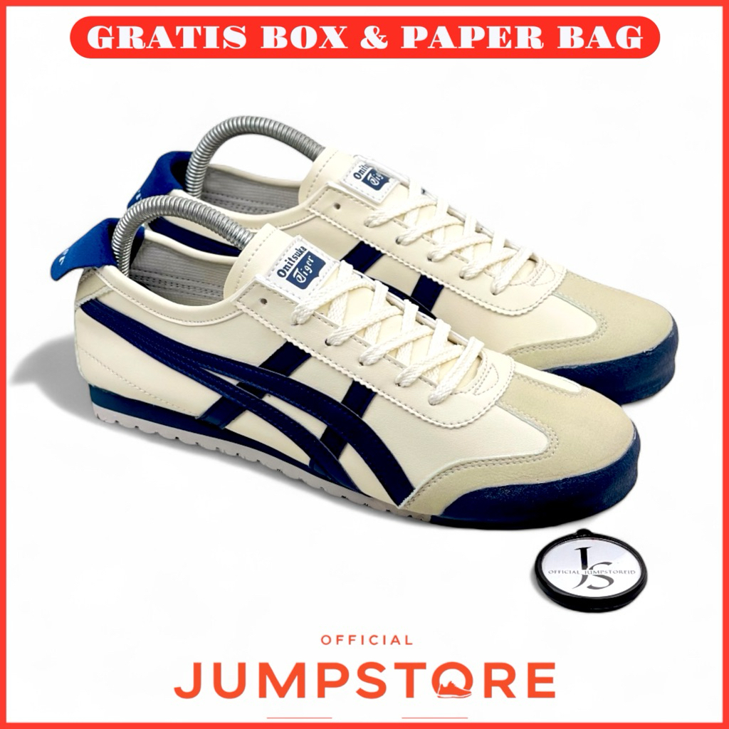 Sepatu 0nitsuka Tiger Tali Cream Navy Gratis Paperbag
