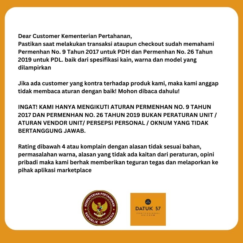 [FULL SET] Original Premium by Datuk 57 : Seragam Kemeja Celana Atasan Bawahan Setelan Stel PDH Pakaian Dinas Haria