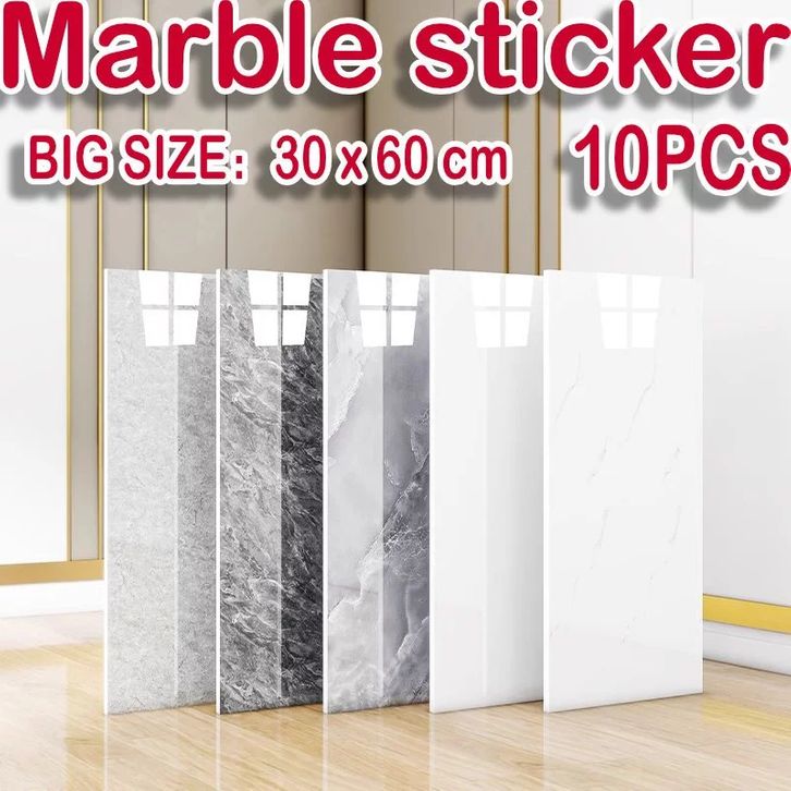 (TERMURAH)10pcs Wallpaper dinding VINYL Marble 30x60 cm / Lantai Vinyl Marbel Granit/Stiker Cabinet Marbel (3MM)