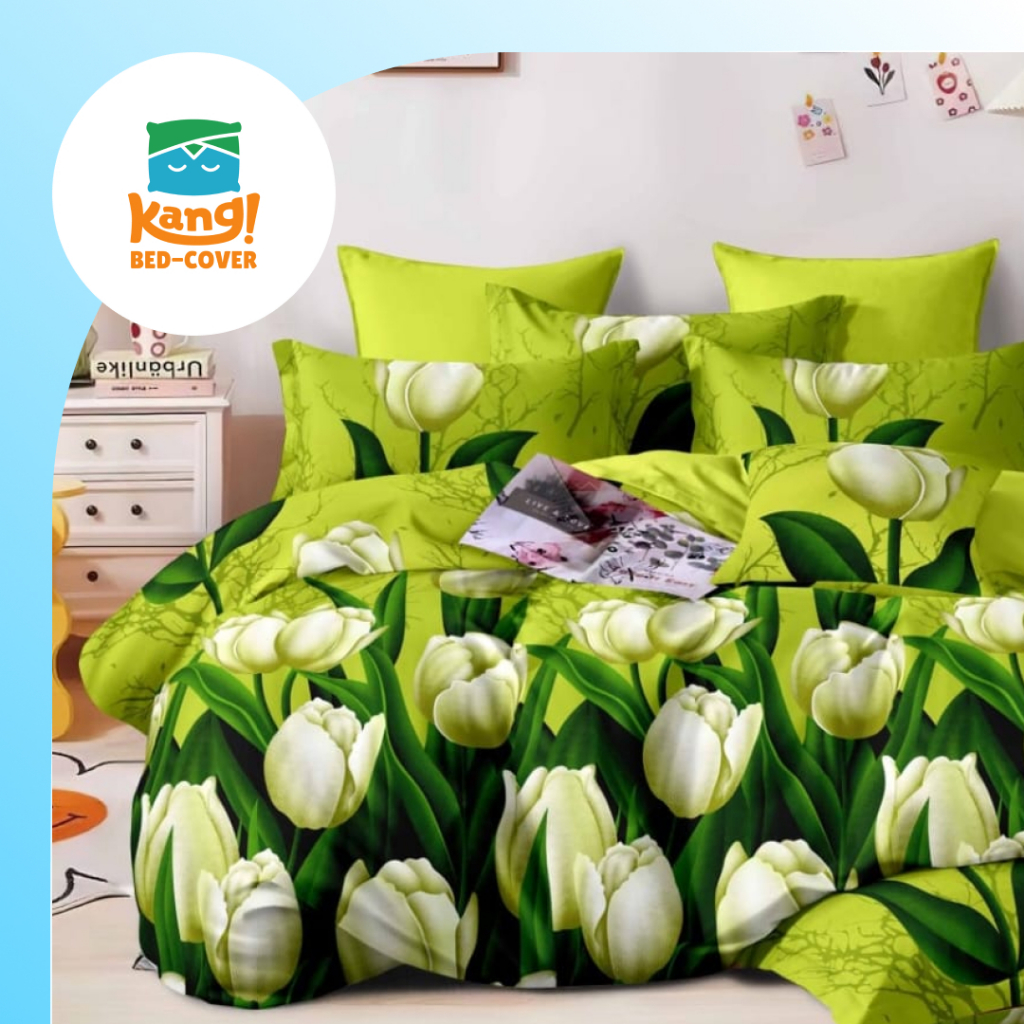 Motif Tulip Hijau Compact - Kang Bedcover Set Sprei Selimut Sarung Bantal Guling Lembut Bolak Balik Bahan Microtex