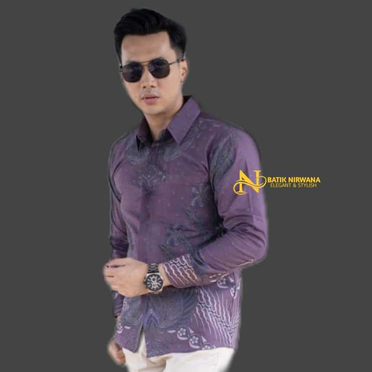 Kemeja Baju Batik Pria Cowok Lengan Panjang Premium Kasual Slimfit Modern Jumbo MAHKOTA KUPU LILAC