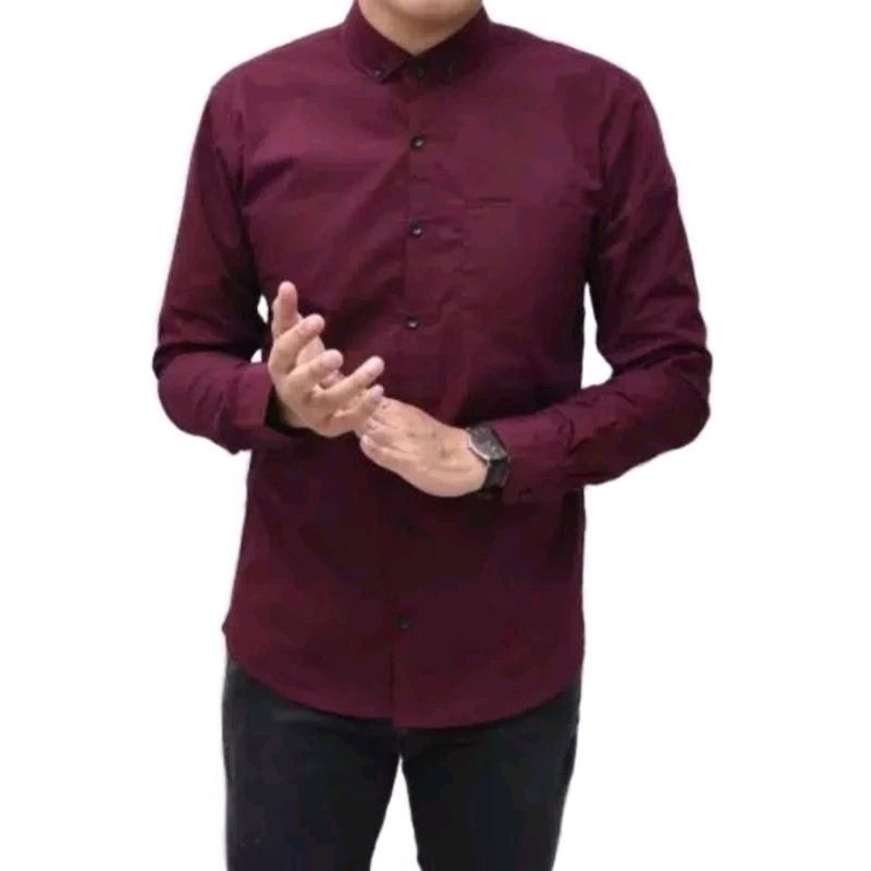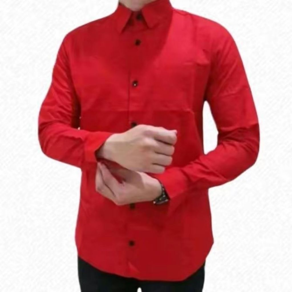 Kemeja Merah Cabe Pria Polos Slimfit Casual Formal Lengan Panjang Pendek Bahan katun lembut Nyaman