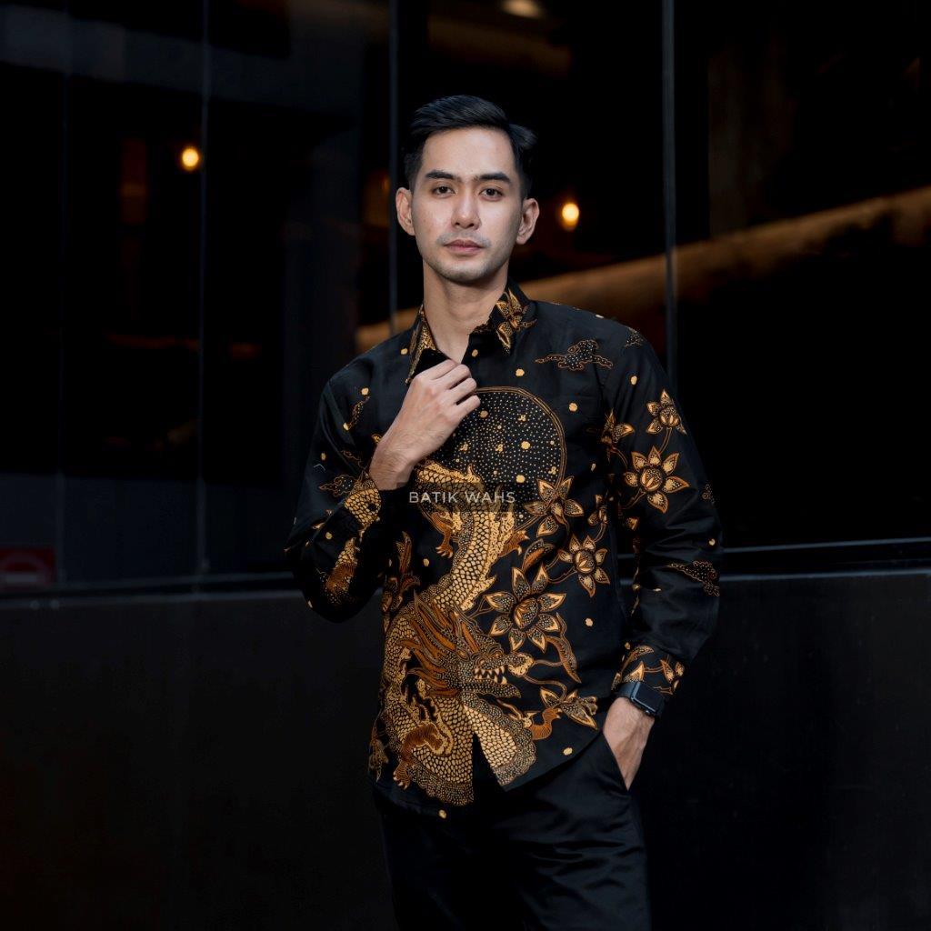 NAGA 3m.4s Kemeja Batik Pria Lengan Panjang Lapis Furing Bahan Katun Adem