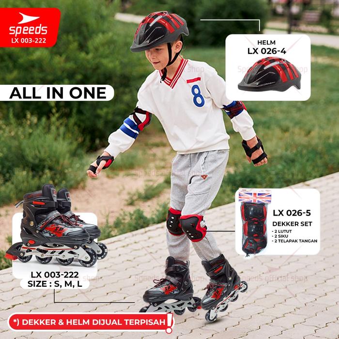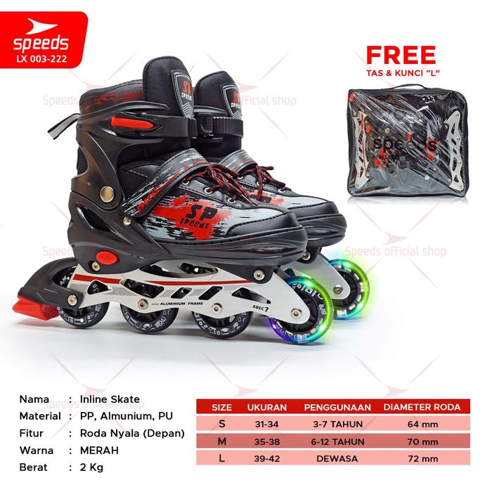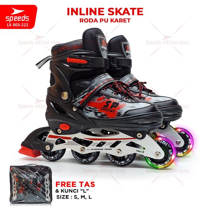 Speeds Sepatu Roda Anak Remaja Dewasa Inline Skate Full Roda Nyala 1 Warna Random Outdoor 003-222 - 111 Hitam Pu, S