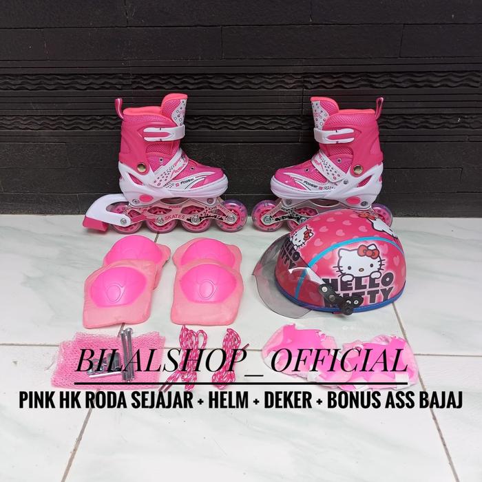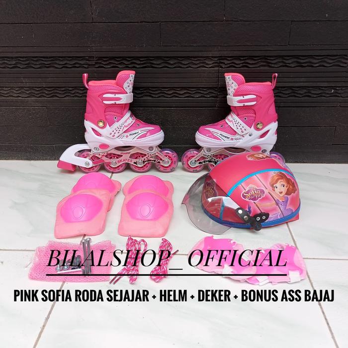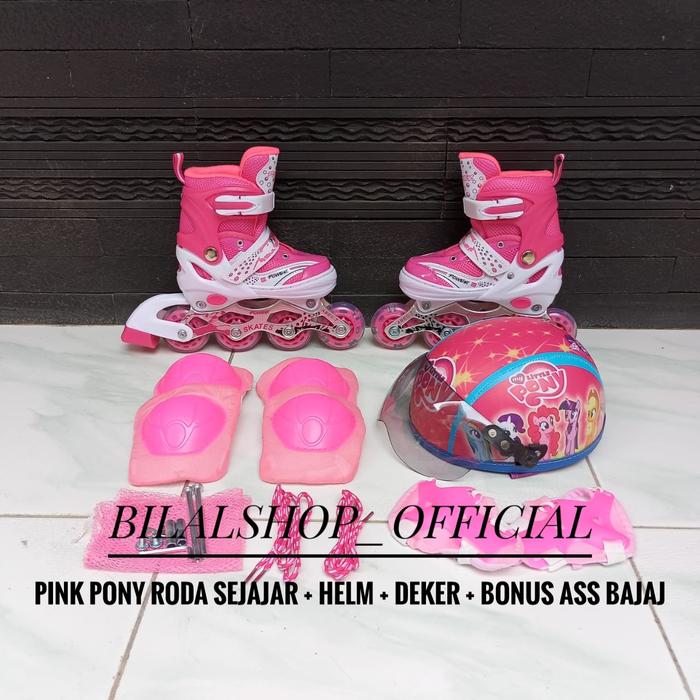 Promo Sepatu Roda Anak Fullset Helm Karakter Deker Bonus Ass Bajaj - Pink Littlepony, L ( 38-42)
