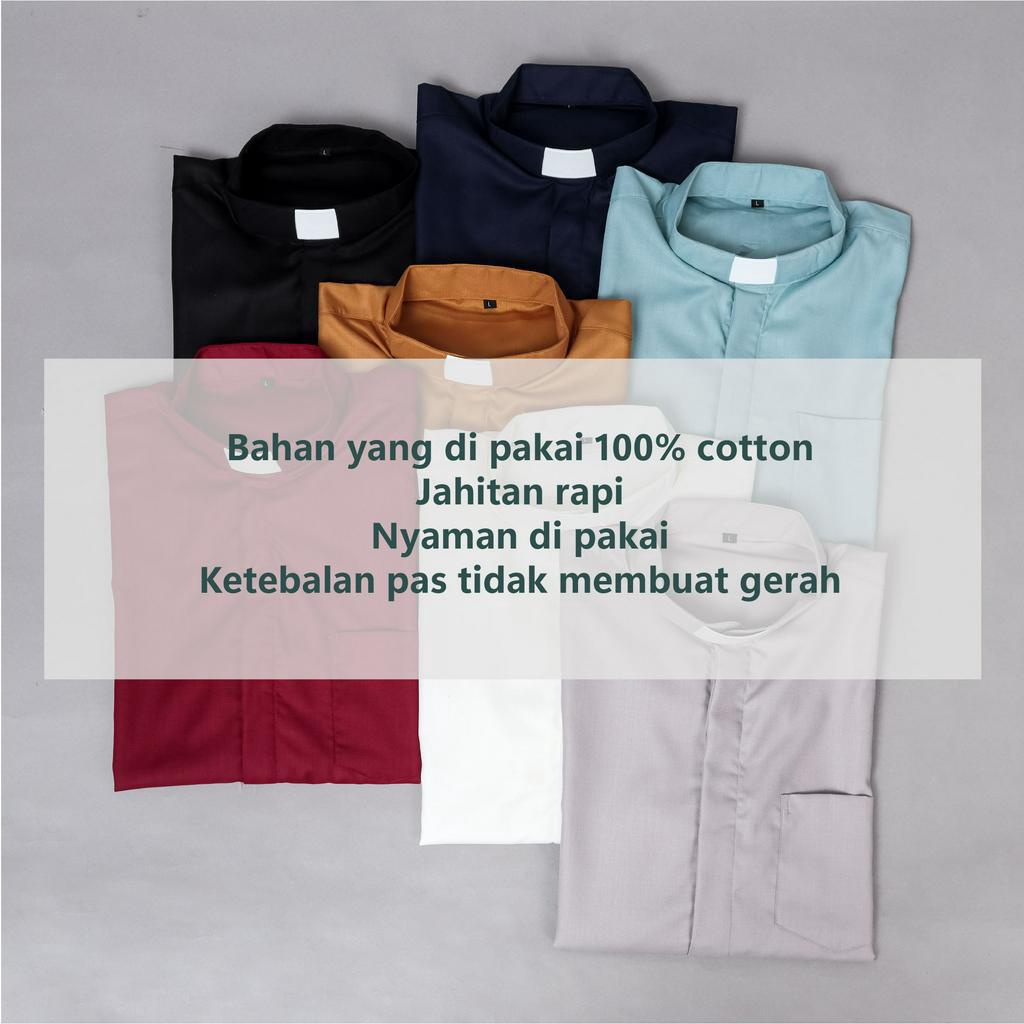 Pendeta - Kemeja Collar Pria Pendek Polos (Kuning - Hijau Botol - Biru Elektrik - Merah) - Jos Miracle Bandung