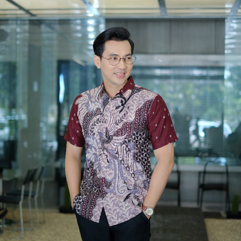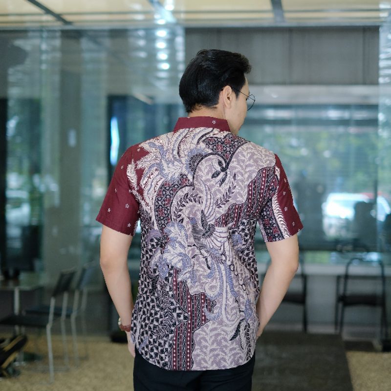 Kemeja Batik Pria Slimfit Lengan Pendek Lapis Furing Motif Artha Bengawan Hem Batik Pria Jumbo