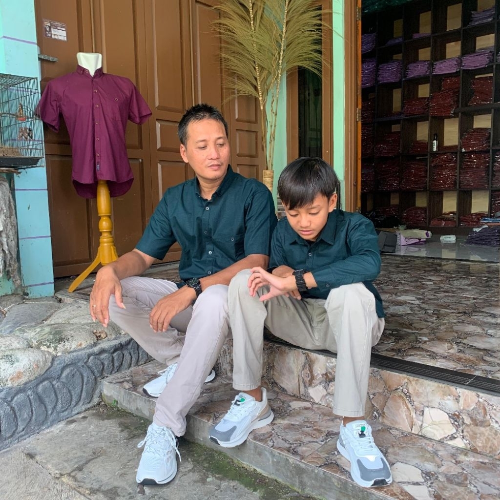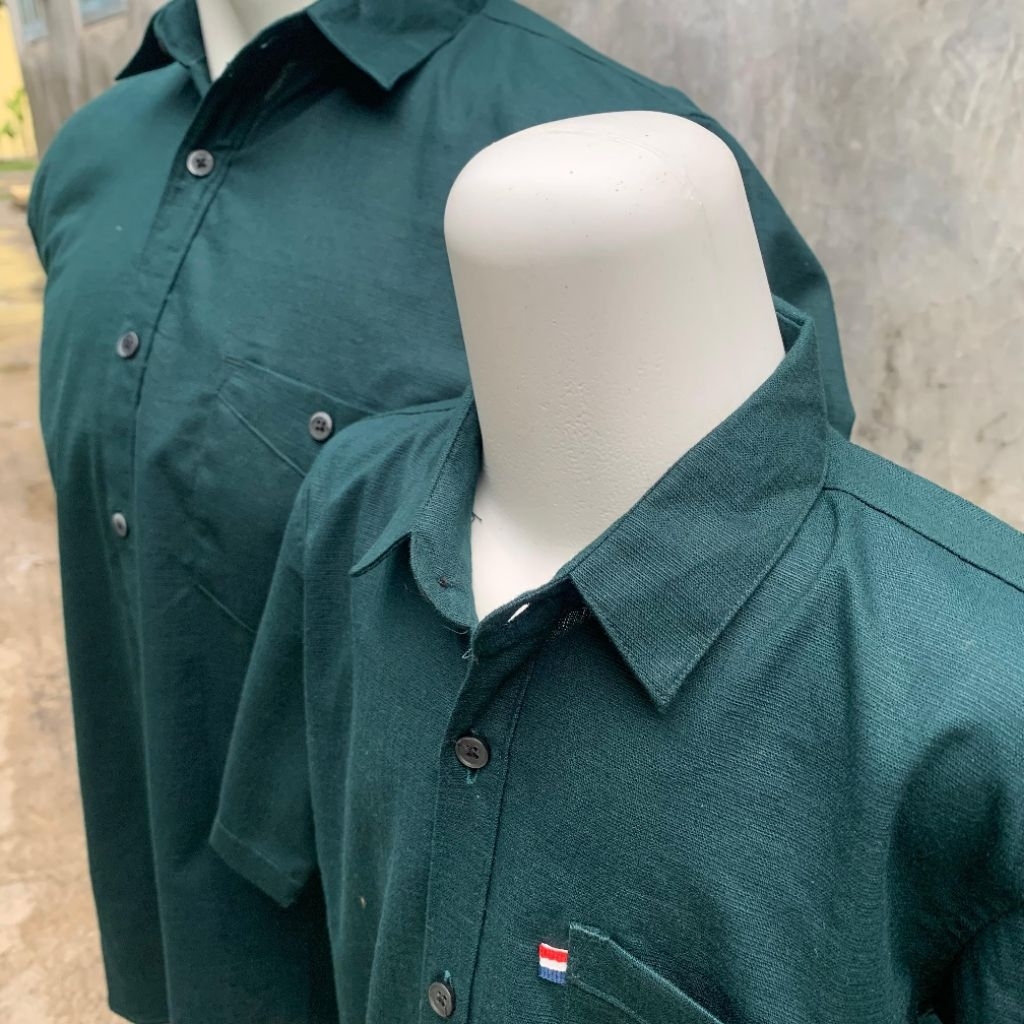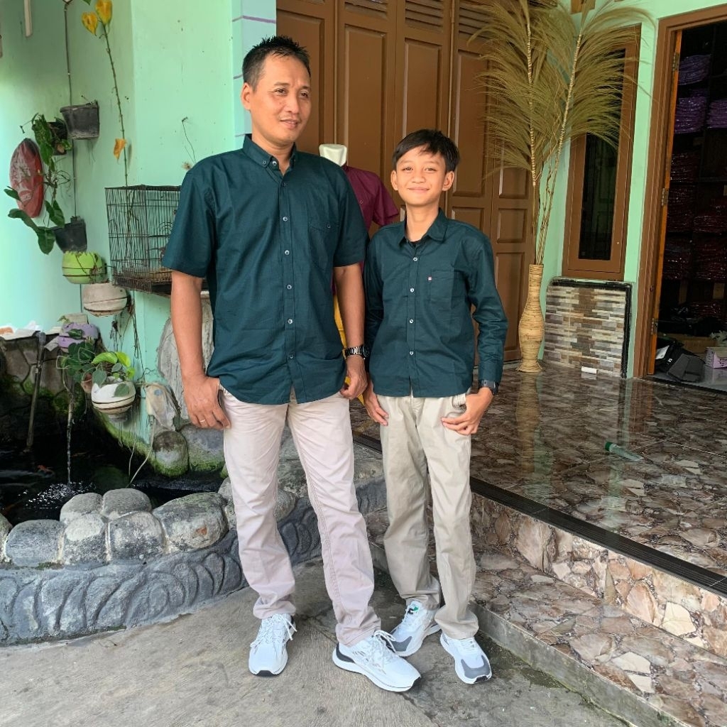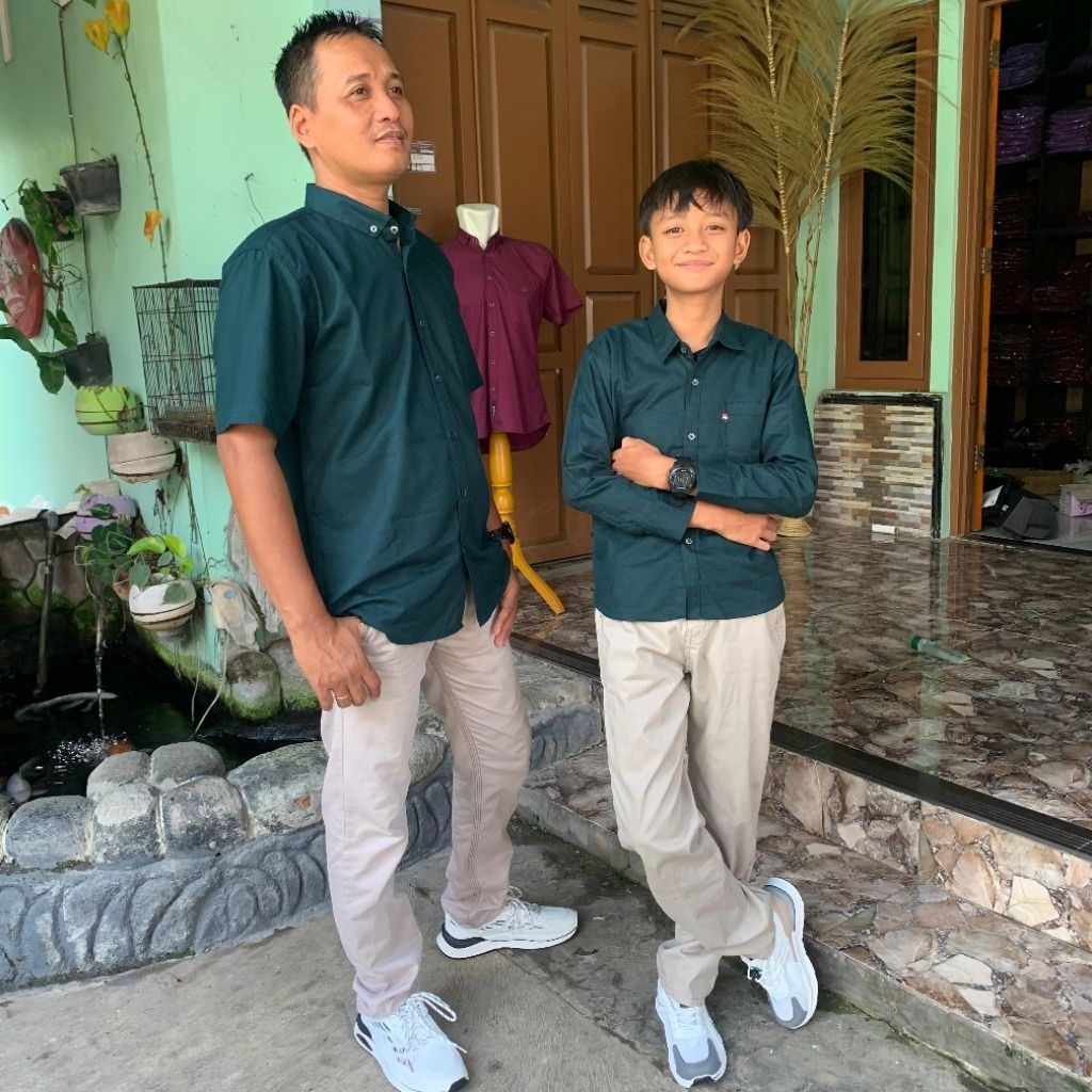 KEMEJA COUPLE AYAH&ANAK WARNA EMERALD GREEN KATUN SIGARET PREMIUM (HARGA SATUAN)
