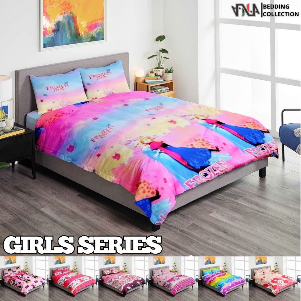 [SERI ANAK PEREMPUAN] Bedcover Set Sprei Bahan Katun Lokal Lembut Ukuran Kasur Single-Extra KIng