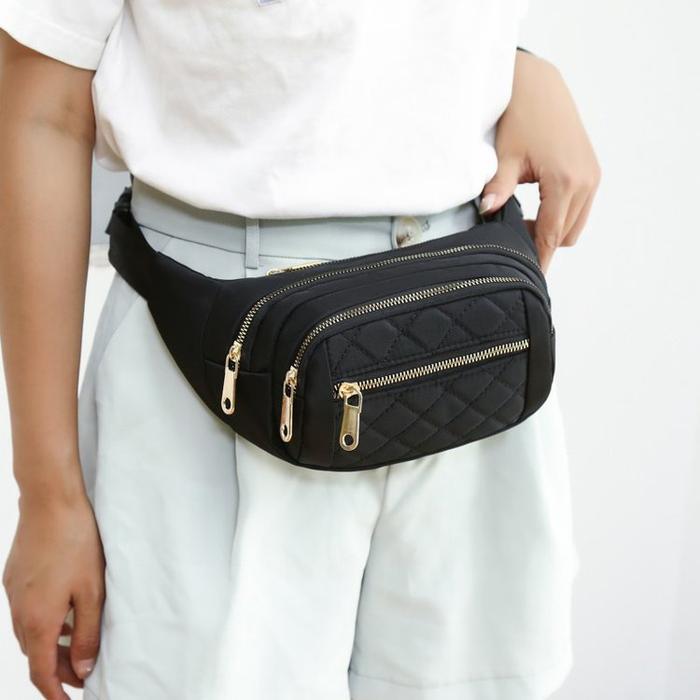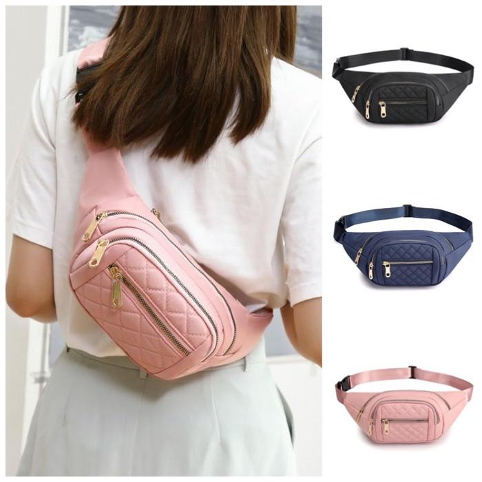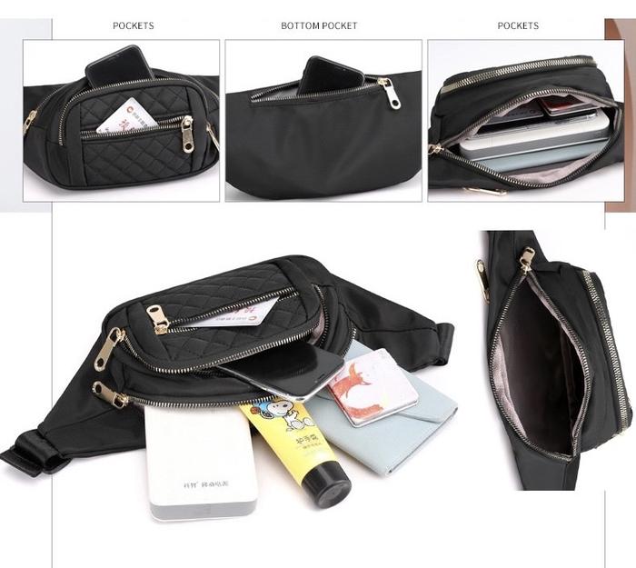 Tas Pinggang Wanita Waist Bag Anti Air Selempang Slingbag Model Do Waistbag Cewek - Hitam
